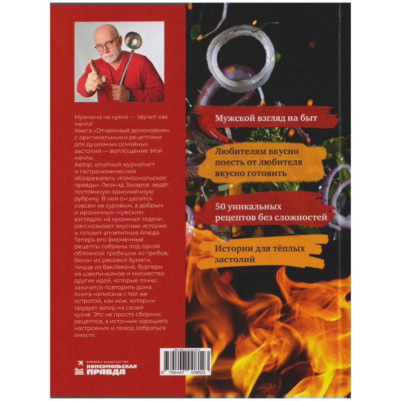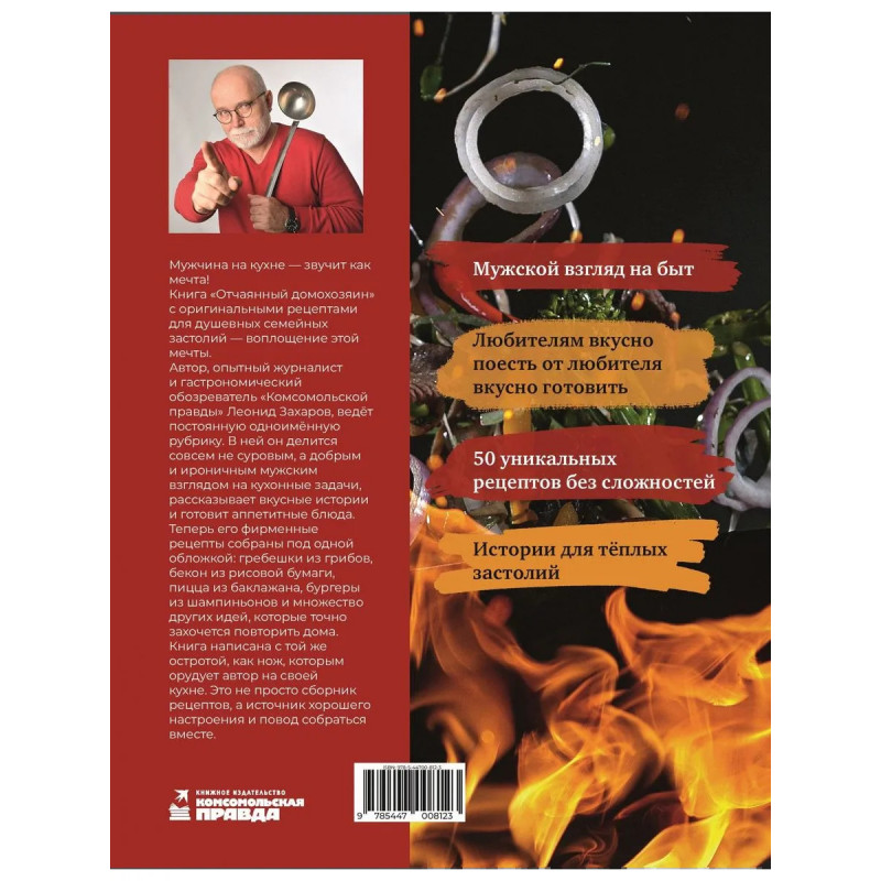 Мужчина на кухне — звучит как мечта! Книга «Отчаянный домохозяин» с оригинальными рецептами для душевных семейных застолий — воплощение этой мечты. Автор, опытный журналист и гастрономический обозреватель Леонид Захаров, ведет постоянную одноименную рубрику. В ней он делится совсем не суровым, а добрым и ироничным мужским взглядом на кухонные задачи, рассказывает вкусные истории и готовит аппетитные блюда. Теперь его фирменные рецепты собраны под одной обложкой: гребешки из грибов, бекон из рисовой бумаги, пицца из баклажана, бургеры из шампиньонов и множество других идей, которые точно захочется повторить дома. Книга написана с той же остротой, как нож, которым орудует автор на своей кухне. Это не просто сборник рецептов, а источник хорошего настроения и повод собраться вместе.