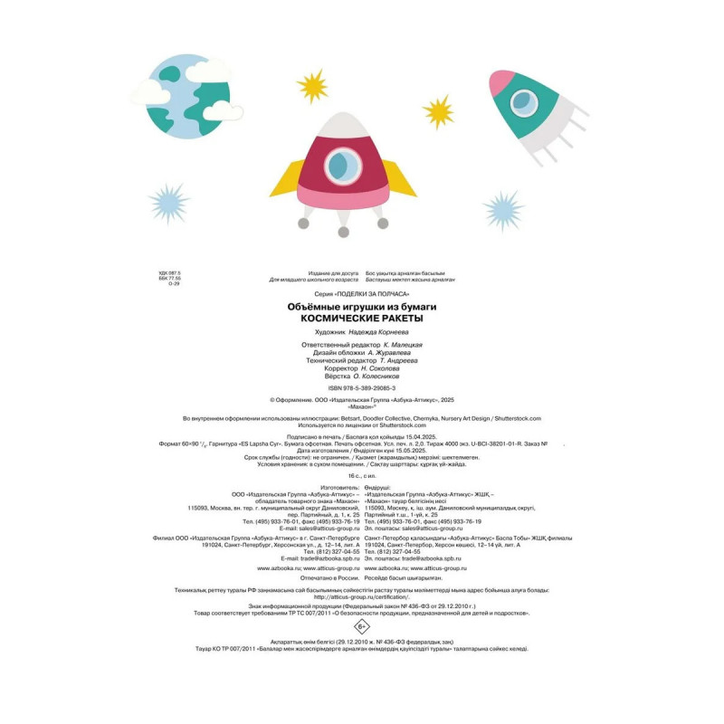 Характеристики Объёмные игрушки из бумаги. Космические ракеты
