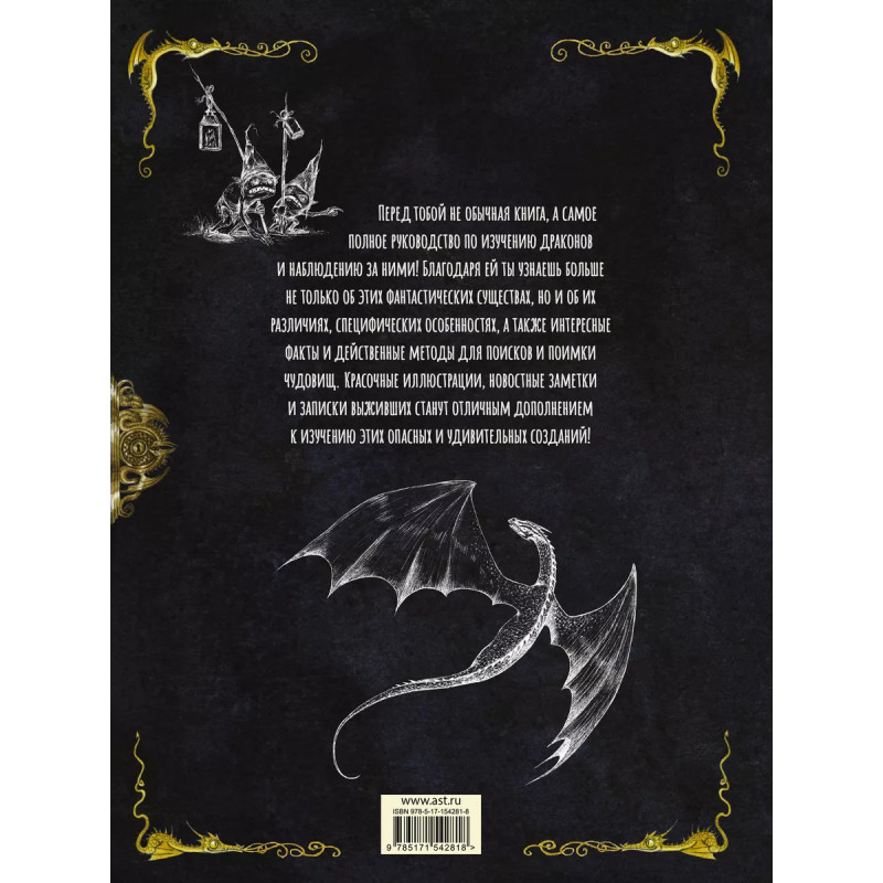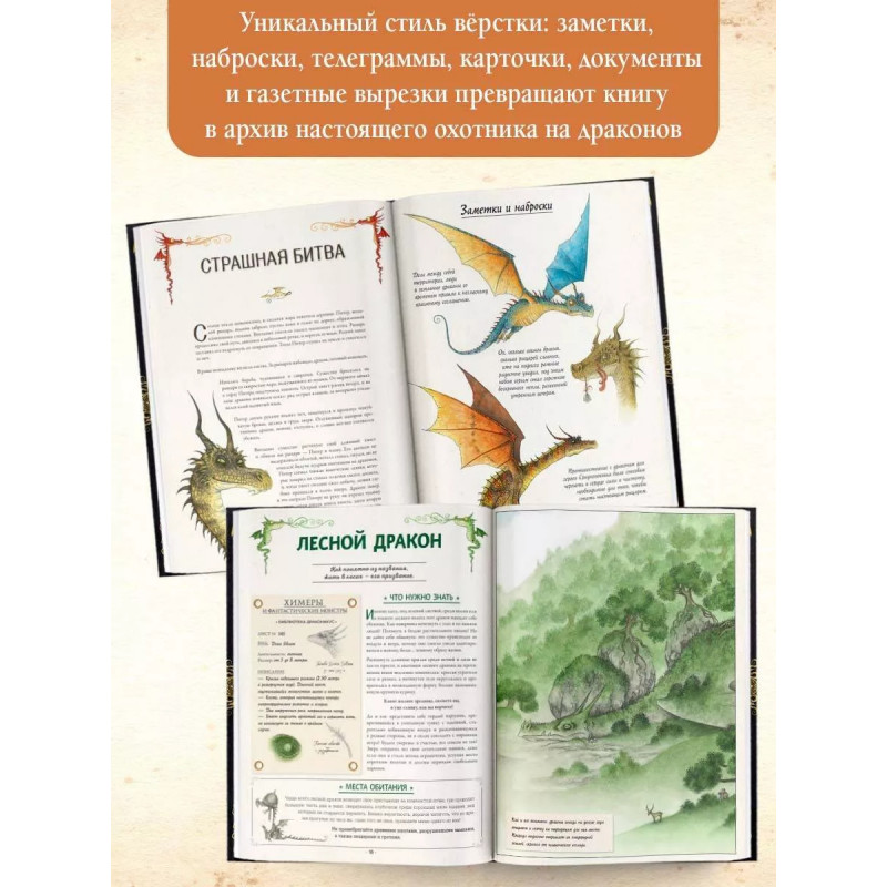 Секретное руководство охотников на драконов. Перед тобой не обычная книга, а самое полное руководство по изучению драконов и наблюдению за ними! Благодаря ей ты узнаешь больше не только об этих фантастических существах, но и об их различиях, специфических особенностях, а также интересные факты и действенные методы для поисков и поимки чудовищ. Красочные иллюстрации, новостные заметки и записки выживших станут отличным дополнением к изучению этих опасных и удивительных созданий.