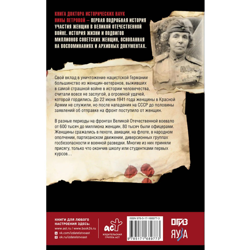 Книга доктора исторических наук Нины Петровой – это первая подробная история участия советских женщин в Великой Отечественной войне. История жизни и подвигов миллионов советских женщин, основанная на воспоминаниях и архивных документах, долгие годы закрытых для историков.