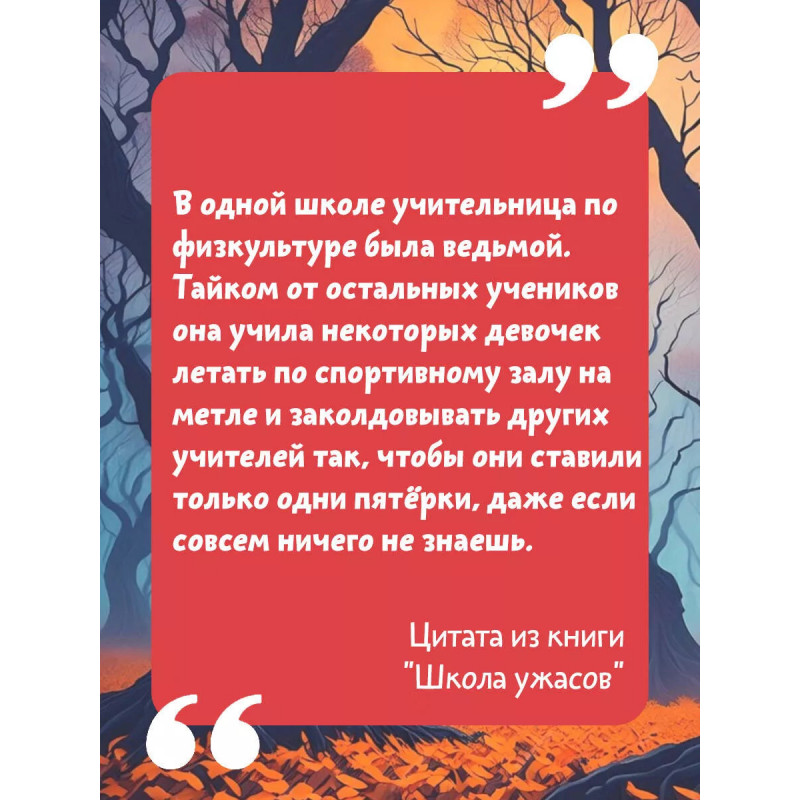 Если на вашем пути в школу встретились людоеды, не теряйтесь потребуйте, чтобы они перед едой помыли руки! Если в вашей школе учительница физкультуры ведьма, никому не рассказывайте, а попросите её покатать вас на метле. Ну а уж если из косточки решили выращивать неизвестно что, не обижайтесь на того, кто вырастет, даже если оно начнёт вас есть! В школе и даже дома ребёнку надо быть готовым ко всему есть вещи пострашнее танцующего скелета и демона учёбы!