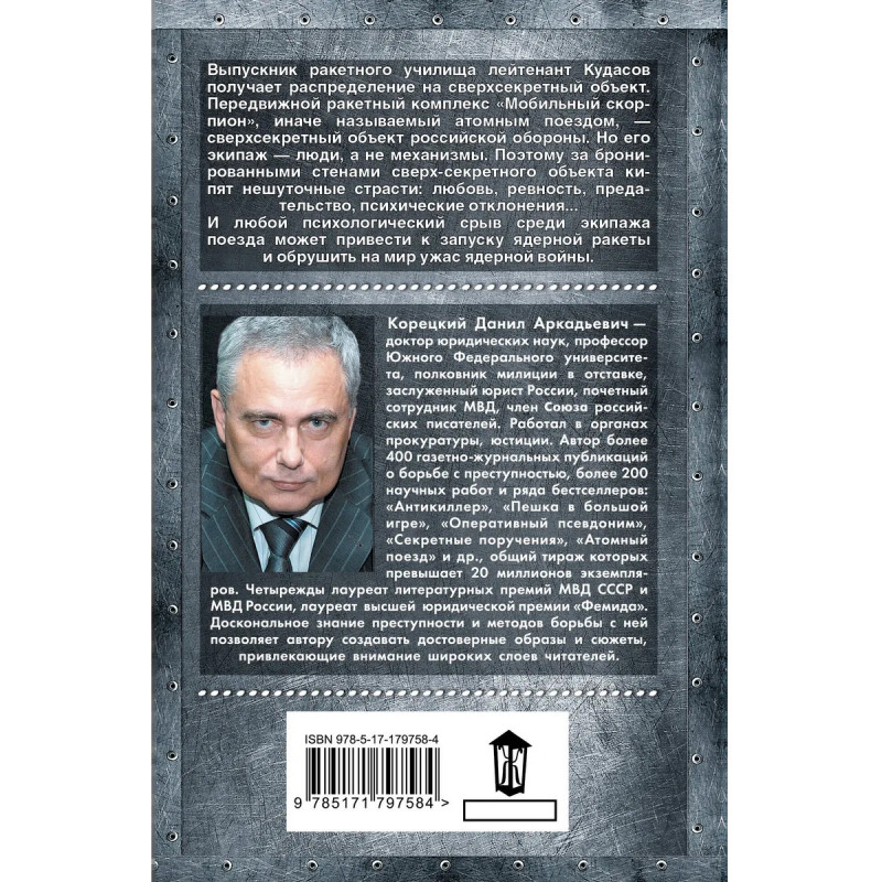 – Переиздание культового романа писателя в покете. – Данил Корецкий — один из признанных мастеров российского детектива, криминалист и автор, чьи книги неизменно входят в списки самых популярных. Создатель серии «Антикиллер», а также бестселлеров «Рок-н-ролл под Кремлем» и «Оперативный псевдоним». Суммарный тираж его произведений превышает 20 миллионов экземпляров. По нескольким романам Корецкого сняты экранизации, в том числе блокбастер Егора Кончаловского «Антикиллер» с Гошей Куценко. — Серия «Шпионы и все остальные. Данил Корецкий». Читайте также: «Оперативный псевдоним», «Антикиллер», «Лабутены для Золушки».