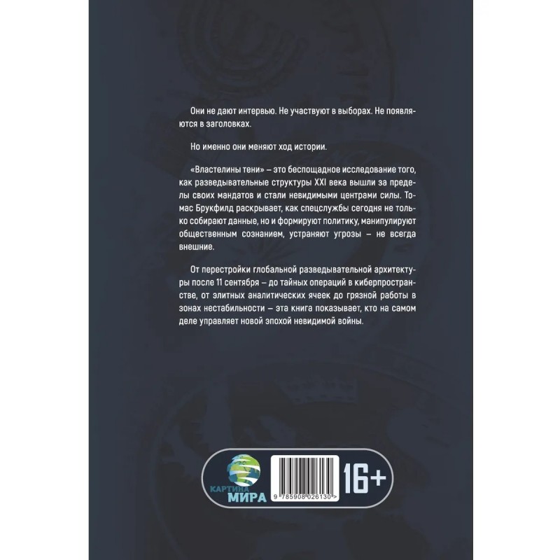 «Властелины тени» — это беспощадное исследование того, как разведывательные структуры XXI века вышли за пределы своих мандатов и стали невидимыми центрами силы. Томас Брукфилд раскрывает, как спецслужбы сегодня не только собирают данные, но и формируют политику, манипулируют общественным сознанием, устраняют угрозы — не всегда внешние.