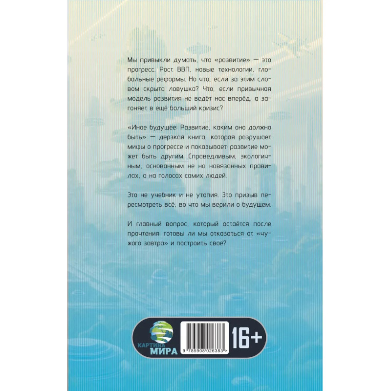 «Иное будущее: Развитие, каким оно должно быть» — дерзкая книга, которая разрушает мифы о прогрессе и показывает: развитие может быть другим. Справедливым, экологичным, основанным не на навязанных правилах, а на голосах самих людей.