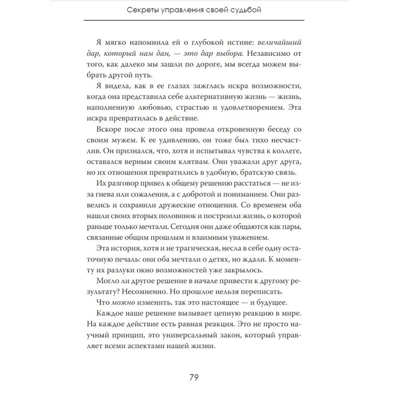 Судьба всегда казалась игрой случая. Но ещё в древности люди верили: есть скрытая энергия, которая позволяет управлять выбором и направлять будущее в нужное русло. Жрецы, философы и мудрецы пытались разгадать её тайну, и теперь она доступна каждому. Энергия выбора. Секреты управления своей судьбой это книга о том, как обрести власть над собственной жизнью. Автор показывает, что каждый наш шаг результат внутренней энергии намерений и мыслей, а ключ к успеху кроется в умении управлять этим потоком. Когда наступает тот момент, который меняет всё? Почему одни становятся творцами своей судьбы, а другие остаются её пленниками? И как использовать силу выбора, чтобы открыть для себя новые горизонты?Эта книга путешествие в историю человеческого стремления управлять будущим и практическое руководство для тех, кто готов взять свою судьбу в собственные руки