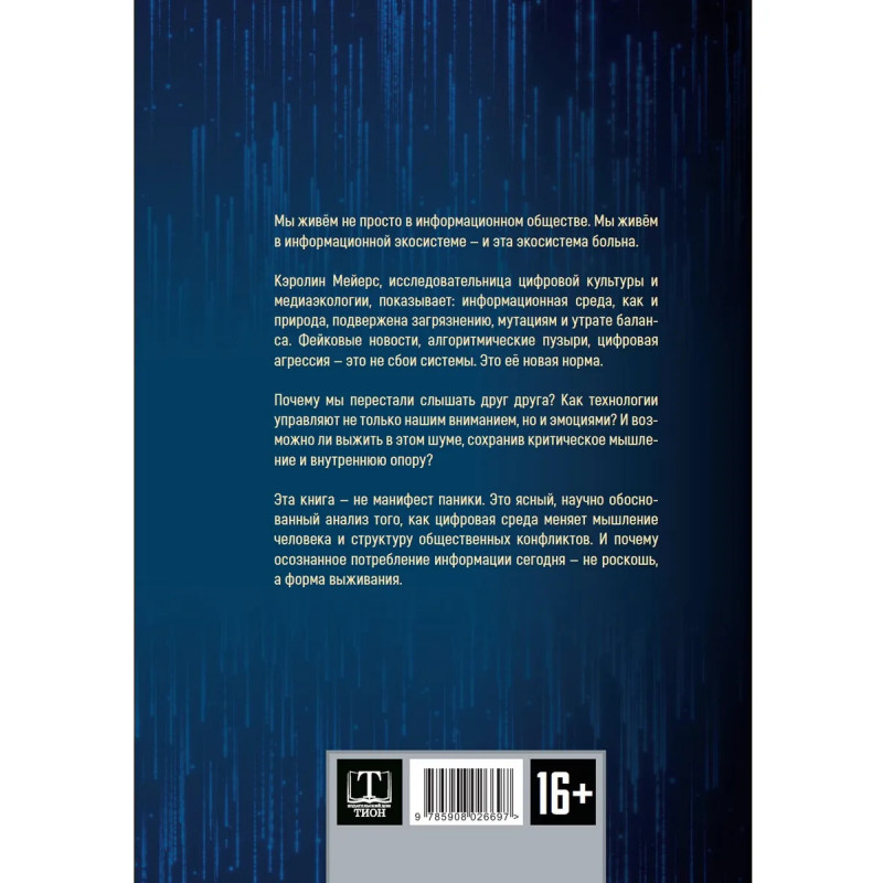 Эта книга — не манифест паники. Это ясный, научно обоснованный анализ того, как цифровая среда меняет мышление человека и структуру общественных конфликтов. И почему осознанное потребление информации сегодня — не роскошь, а форма выживания.