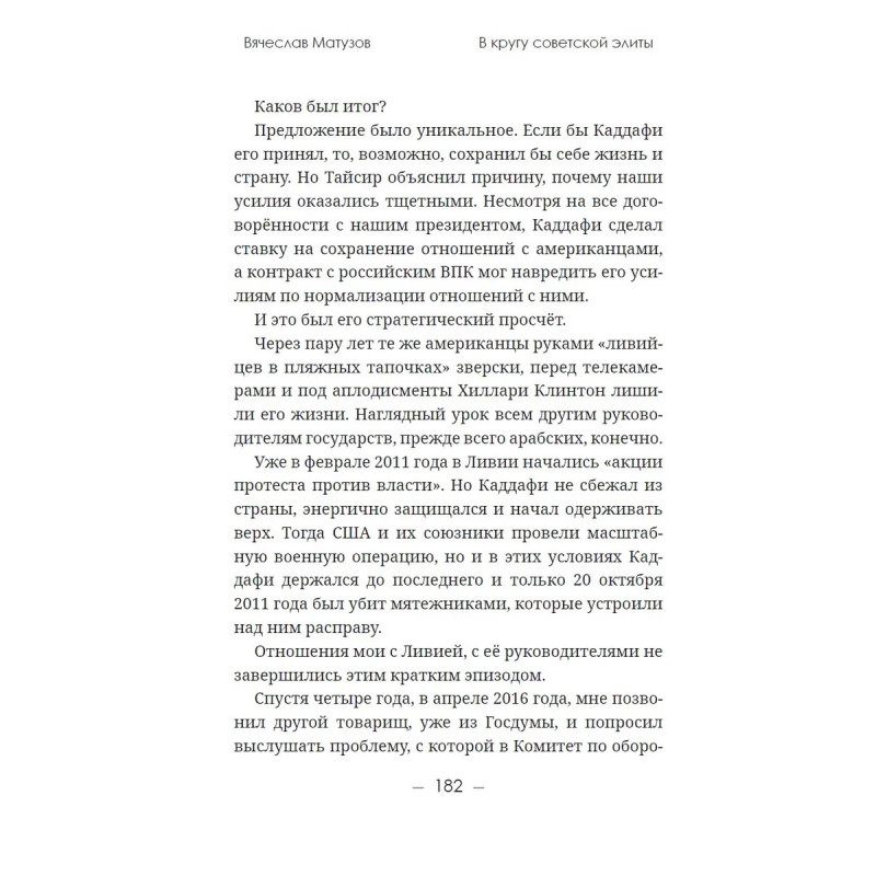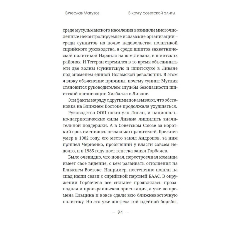 Уникальные воспоминания бывшего советского дипломата Вячеслава Матузова. Автор был не только свидетелем, но и участником целого ряда ключевых событий мирового значения. Лично знал таких известных зарубежных лидеров, как Саддам Хусейн, Хафез Асад, Ясир Арафат. В разгар острейшего противостояния сверхдержав работал в Международном отделе ЦК КПСС и был сотрудником советского посольства в Ливане. На излете Перестройки, когда происходила смена государственной системы, а отношения Вашингтона и Москвы резко активизировались, Матузов был направлен на работу в посольство Советского Союза в США.