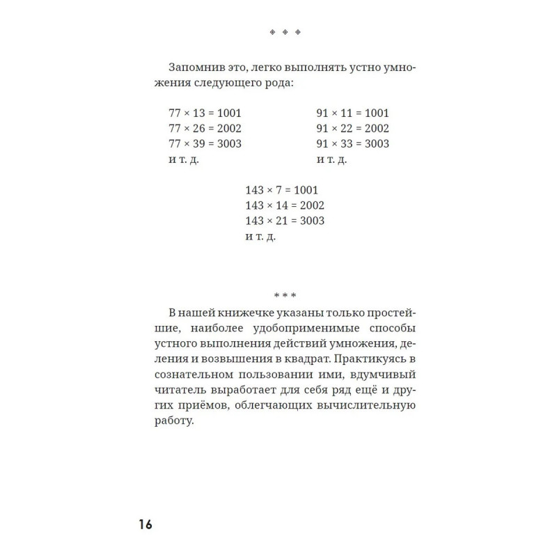 Это компактное, но насыщенное пособие знакомит читателя с тридцатью элегантными приёмами устных вычислений — от умножения и деления до возведения в квадрат. Все методы основаны на ясных математических идеях и легко осваиваются без специальной подготовки. Никаких фокусов и «секретных трюков» — только здравый смысл, тренировка и удовольствие от работы мысли.