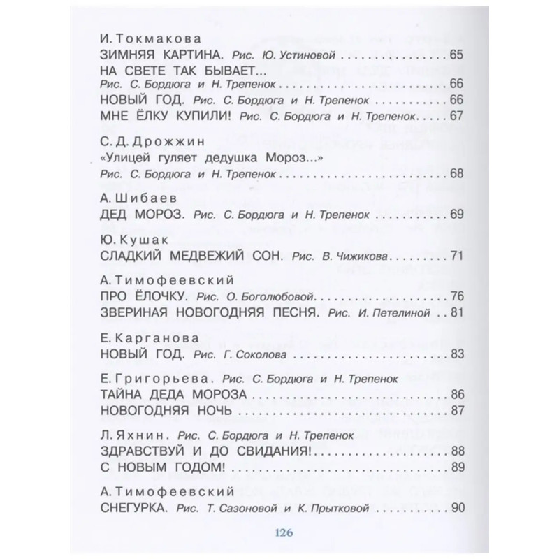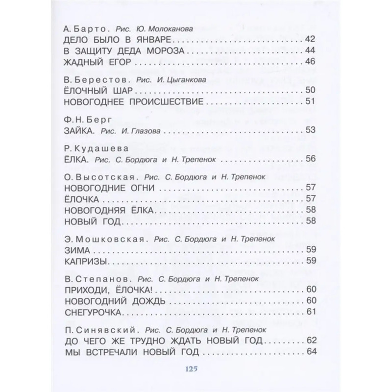 ISBN 9785-1715-07282. Новогодние стихи. Новый год не может быть без ёлки, Деда Мороза, подарков, и, конечно, без стихов и песенок. Ведь именно они создают новогоднее настроение! В нашу книгу вошли стихи лучших детских поэтов С. Маршака, С. Михалкова, В. Степанова и других. Теперь подготовиться к Новому году легко! Стоит только открыть книжку и погрузиться в чтение. А ещё можно выучить понравившееся стихотворение и рассказать его на утреннике в детском саду или в школе. Для дошкольного возраста. Новому году радуются все на свете деревья, птицы, звери и, конечно, люди. Лучшие детские поэты С. Маршак, С. Михалков, А. Барто и другие сочинили стихи, посвящённые новогоднему празднику. Теперь мальчишки и девчонки могут приблизить Новый год. Сделать это просто: нужно открыть книжку и читать-читать-читать.