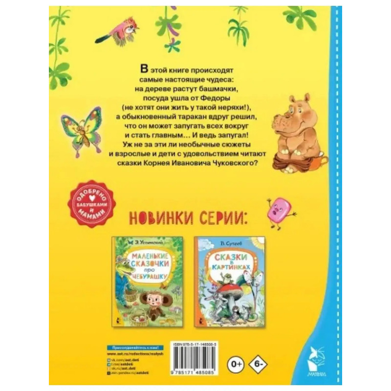 ISBN 9785-17148-5085. Сказки для малышей. Корней Иванович Чуковский (18821969) детский писатель, поэт, переводчик и литературовед. Первую сказку он написал для своего заболевшего сына. А потом на свет появились произведения "Мойдодыр", "Тараканище" и "Бармалей". Однако не всем они понравились: критики и редакторы их разругали, придумав для необычных сказок специальный термин "чуковщина". Однако эти сказки живы до сих пор и продолжают радовать маленьких читателей. В книгу вошли самые известные произведения для малышей: "Муха-Цокотуха", "Тараканище", "Мойдодыр", "Чудо-дерево" и другие. Иллюстрации С. Бордюга и Н. Трепенок. Для дошкольного возраста.