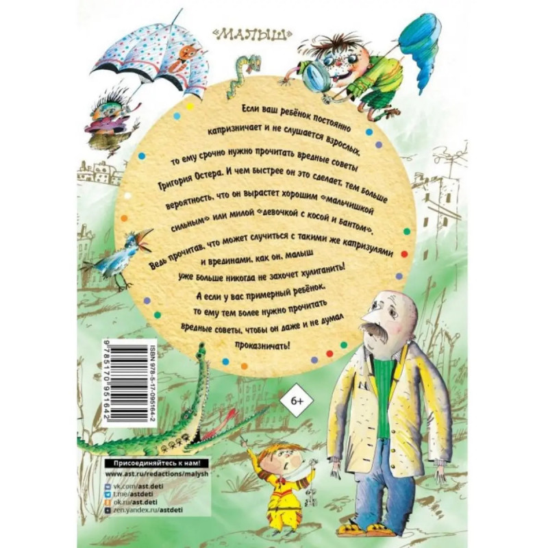 ISBN 9785-17095-1642. Все вредные советы. Все вредные советы. Остер Г. Б. Если ваш ребёнок постоянно капризничает и не слушается взрослых, то ему срочно нужно прочитать вредные советы Григория Остера. И чем быстрее он это сделает, тем больше вероятность, что он вырастет хорошим "мальчишкой сильным" или милой "девочкой с косой и бантом".