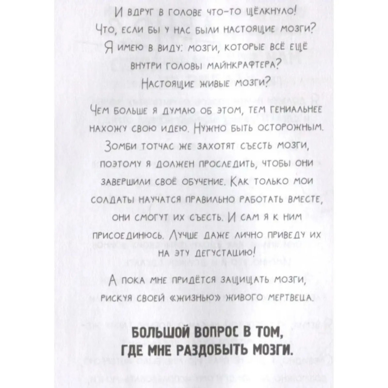 ISBN 9785-17145-2650. Minecraft. Дневник зомби. Берн, зомби, который хотел захватить мир. Кид Б. Новая книга о мире Minecraft!Читайте о приключениях зомби Берна и его величайшей зомби-армии в этом весёлом иллюстрированном дневнике!Берну потребовались долгие годы, чтобы собрать самую огромную армию зомби, которую когда-либо видел свет. Теперь им предстоит захватить Верхний мир! Вот только есть небольшие проблемы. Зомби не очень-то дисциплинированны, сообразительны и всё никак не запомнят, где право, а где лево. Сумеет ли Берн что-нибудь придумать, чтобы его планы осуществились?