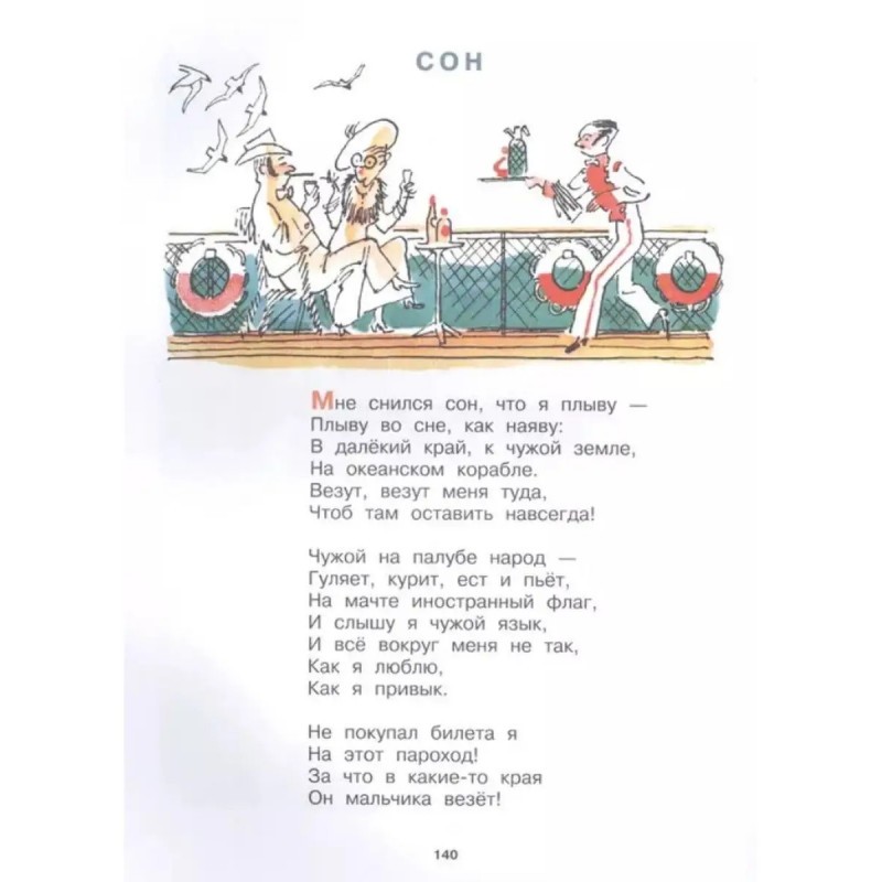 От 3 до 10. Михалков С. В. Мы гуляли по Неглинной,Заходили на бульвар,Нам купили синий-синий,Презелёный красный шар. Вот бы такой шар получить! Как много радости жизни в стихах Сергея Михалкова! Он знал, что важно для детей, что делает их счастливыми: ужи и ежи, разбежавшиеся по квартире, здоровенный бык, который каждое утро заглядывает в окно, путешествие в компании кота и попугая, велосипед, лыжи, костёр и, конечно, озорной щенок. Все эти персонажи обитают в классической книге С. Михалкова От трёх до десяти с иллюстрациями М. Скобелева, изданной впервые в 1983 году к 70-летию автора.