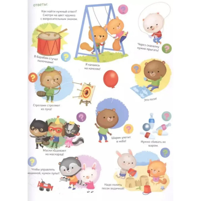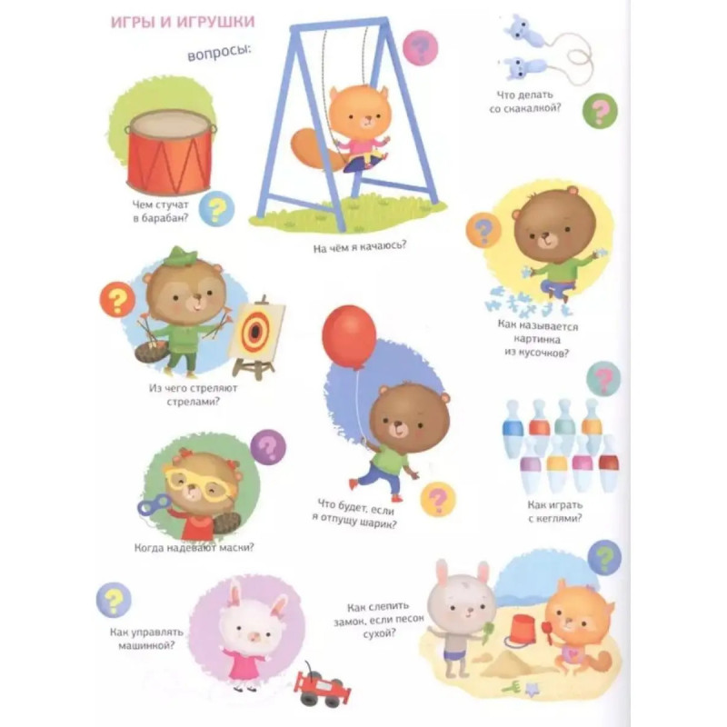 1000 первых вопросов в картинках. Серия "Большая книга малыша" поможет ребёнку заговорить. В доступной и интересной малышу форме книги серии закладывают основу речевых навыков, расширяют словарный запас, пополняют знания об окружающем мире, стимулируют к произнесению первых слов и простых формулировок, тренируют логическое мышление и память. Показывайте на картинку, читайте ребёнку вопросы, отвечайте вместе с ним. Слева на страничке вопросы для малыша, справа ответы. Каждый разворот представляет одну тему актуальную для малыша: игры и игрушки, предметы мебели, сезонная одежда, времена года, явления природы, интересные животные, важные профессии, еда, органы чувств. Для младшего дошкольного возраста.