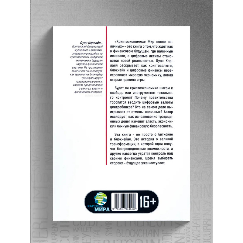 Криптоэкономика: Мир после наличных. Оуэн Карлайл. "Криптоэкономика: Мир после наличных" это книга о том, что ждет нас в финансовом будущем, где наличные исчезают, а цифровые активы становятся новой реальностью. Оуэн Карлайл раскрывает, как криптовалюты, блокчейн и цифровые финансы перестраивают мировую экономику, ломая старые правила игры. Будет ли криптоэкономика шагом к свободе или инструментом тотального контроля? Почему правительства торопятся вводить цифровые валюты центробанков? Кто на самом делеивыигрывает от отмены наличных? Автор исследует, как исчезновение традиционных денег изменит власть, экономику и личную финансовую безопасность. Эта книга не просто о биткойне и блокчейне. Это история о великой трансформации, в которой одни получат беспрецедентные возможности, а другие навсегда утратят контроль над своими финансами. Время выбирать сторону будущее уже наступает.