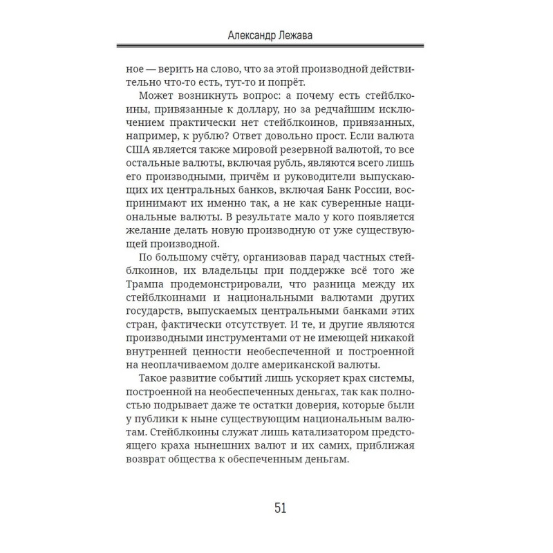 Эта книга является продолжением книги "Цифровой Рубль. Простыми словами" и раскрывает захватывающее появление конкурента цифровых валют центральных банков (ЦВЦБ) - стабильных монет или стейблкоинов. Раскрываются их становление и интеграция в сердце глобальной цифровой экономики, анализируется их реальное применение. Читатель погружается в динамику интеграции и противостояния стейблкоинов и ЦВЦБ. Эти инструменты формируют новый гибридный денежный мир, где скорость инноваций встречается с доверием к деньгам и их взаимосвязи с установлением контроля за населением. Показано размывание граней между частными и государственными деньгами.