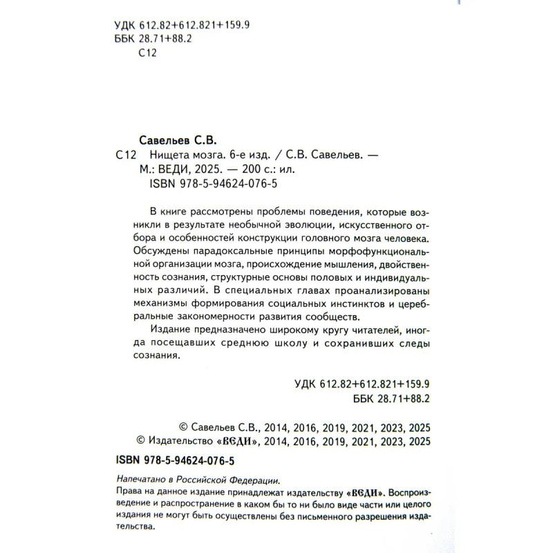 Характеристики Нищета мозга. 6-е издание. Савельев С. В.