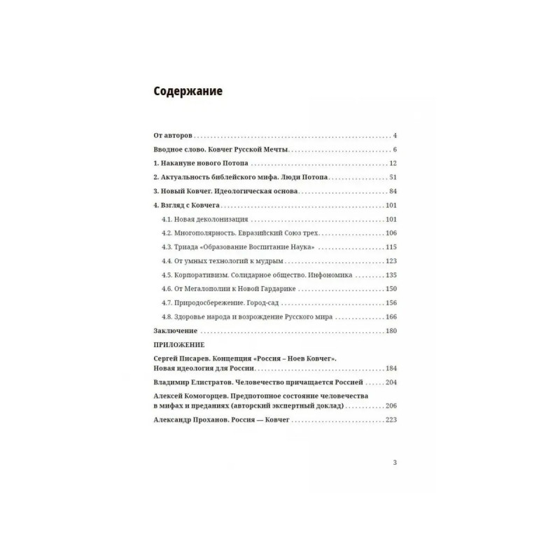Русский Ковчег. Альтернативная стратегия. Издание представляет собой разработку коллектива авторов, собранных под эгидами Изборского клуба и Института динамического консерватизма. Ядро авторского коллектива (В. Аверьянов, А. Кобяков, М. Калашников, К. Черемных) - это та же команда, которая в 2005 году создавала знаменитый труд "Русская доктрина". Как и тогда, главным инициатором разработки выступил екатеринбургский фонд "Русский предприниматель". Его президент Сергей Писарев еще в 2008 году впервые выдвинул идею России как Ноева Ковчега для человечества в наступающей кризисной эпохе. И сейчас эта идея активно прорастает в обществе. Нынешняя работа является следующим шагом, следующей ступенью по отношению к Русской доктрине. Главное отличие - на этот раз она создается не только для "внутреннего пользования", но может найти своих читателей и последователей в других цивилизациях.