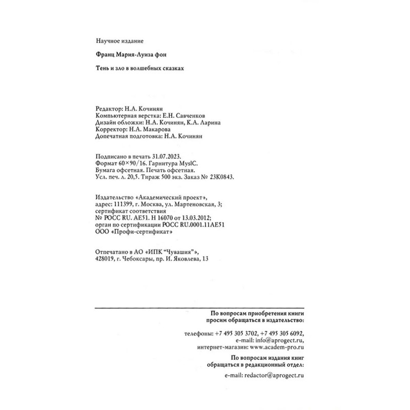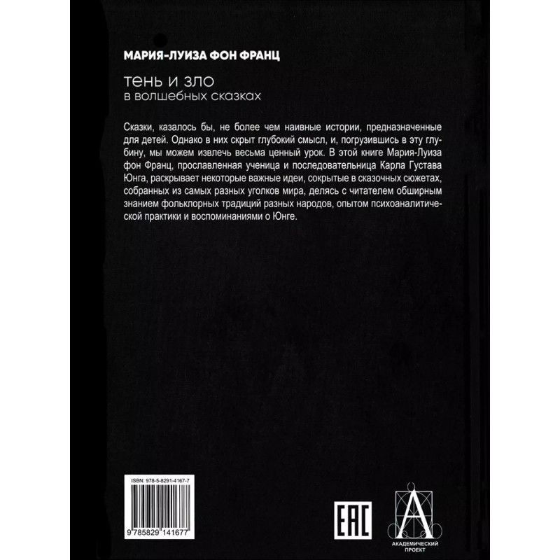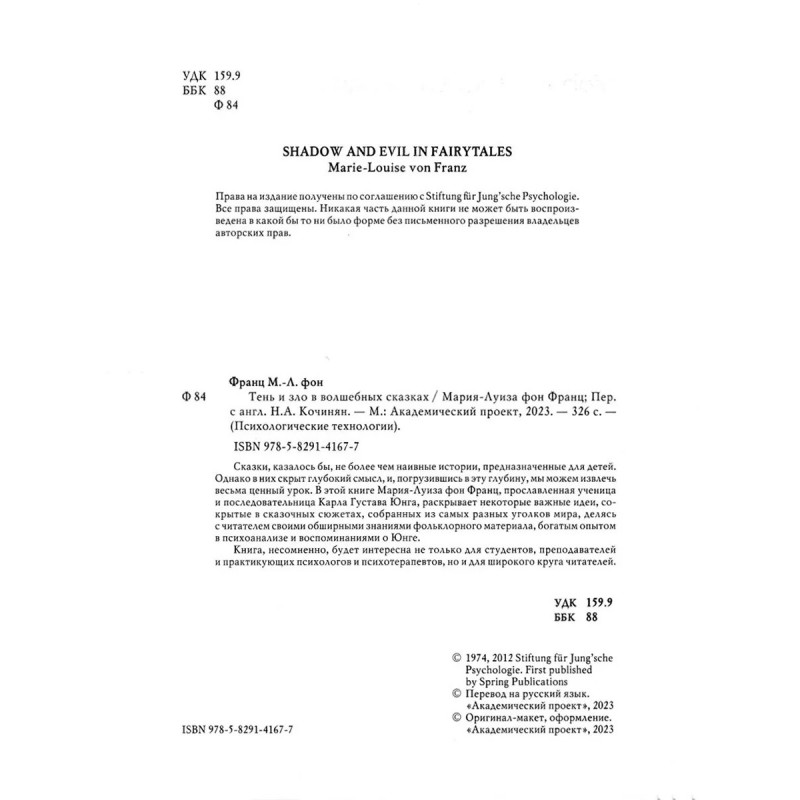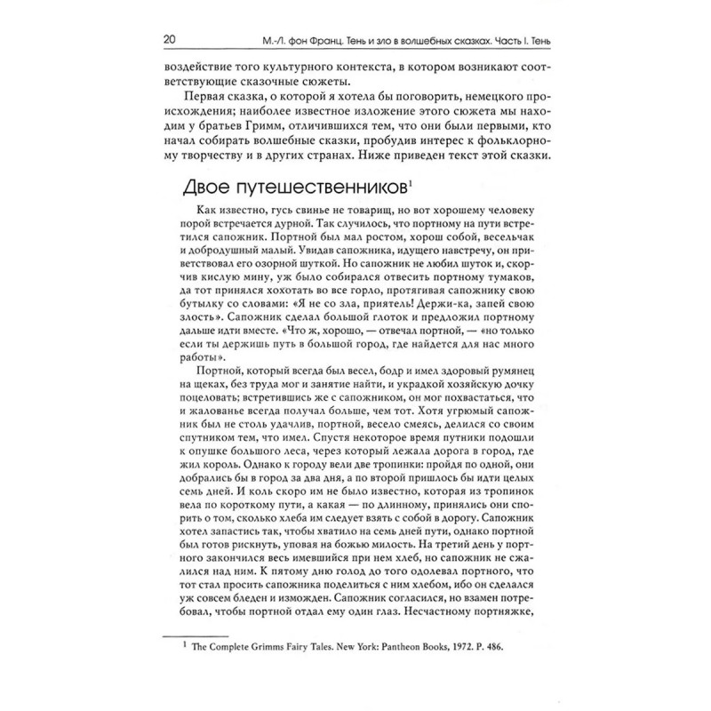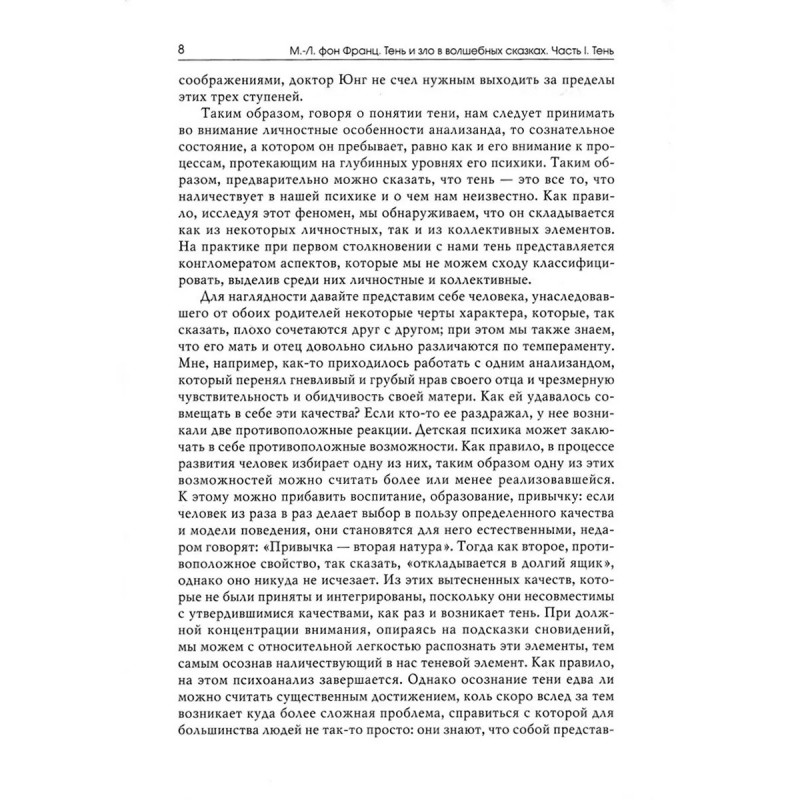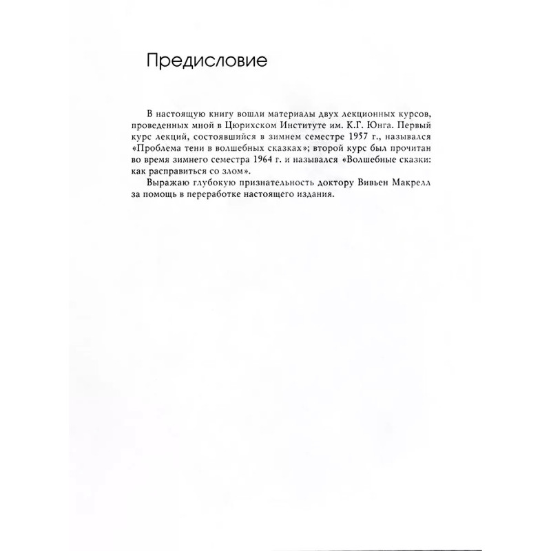 Тень и зло в волшебных сказках. Фон Франц М-Л. Сказки, казалось бы, не более чем наивные истории, предназначенные для детей. Однако в них скрыт глубокий смысл, и, погрузившись в эту глубину, мы можем извлечь весьма ценный урок. В этой книге Мария-Луиза фон Франц, прославленная ученица и последовательница Карла Густава Юнга, раскрывает некоторые важные идеи, сокрытые в сказочных сюжетах, собранных из самых разных уголков мира, делясь с читателем своими обширными знаниями фольклорного материала, богатым опытом в психоанализе и воспоминаниями о Юнге. Книга, несомненно, будет интересна не только для студентов, преподавателей и практикующих психологов и психотерапевтов, но и для широкого круга читателей.