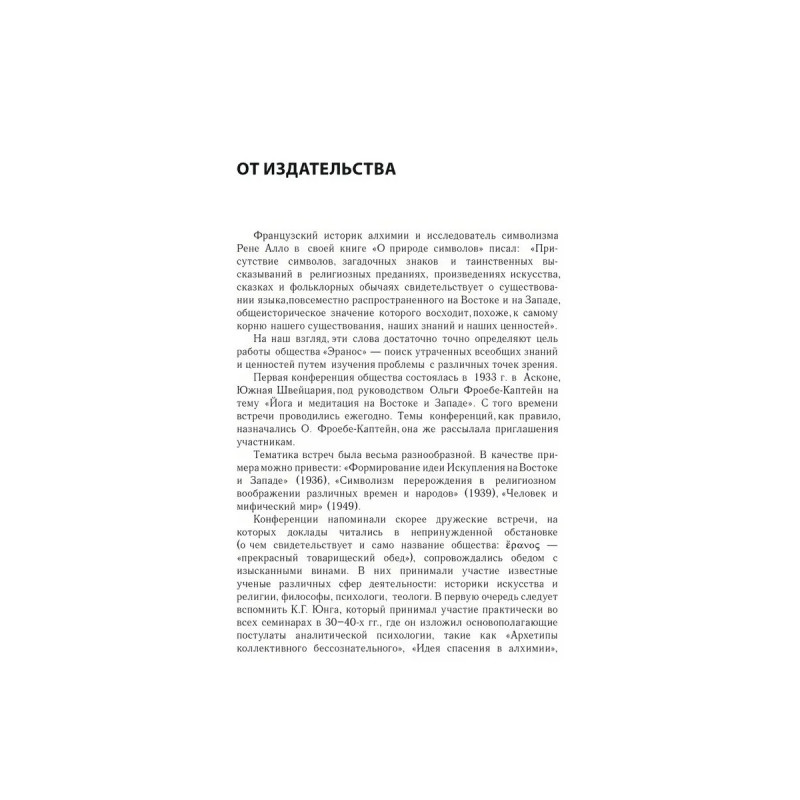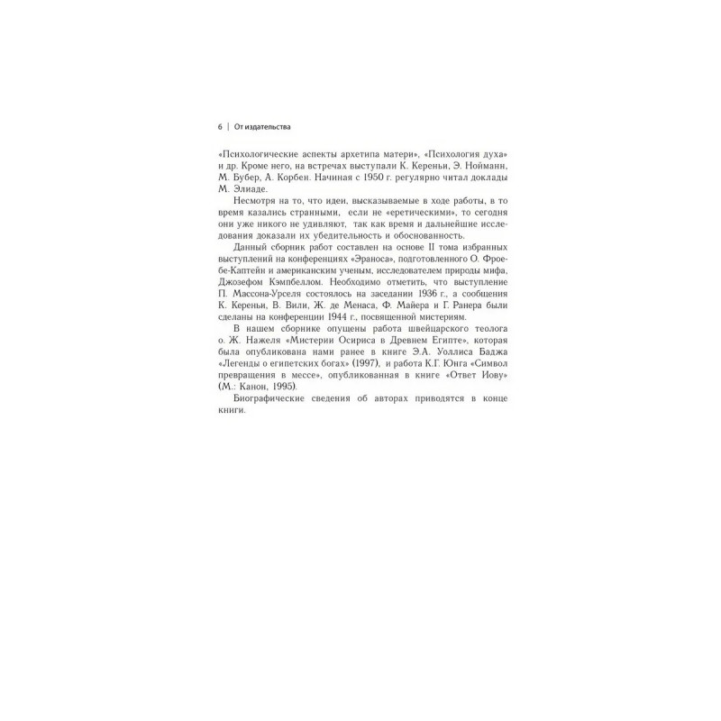 Общество "Эранос" - междисциплинарный дискуссионный клуб, действовавший в самом сердце Европы с 1933 г. вплоть до 2006 г. В клубе участвовали крупные исследователи в области науки, истории, филологии и религии, среди которых были М. Бубер, М. Элиаде, К. Г. Юнг, И. Пригожин и др. В рамках деятельности этого интеллектуального кружка проводились ежегодные конференции. В эту книгу вошли статьи, посвященные теме конференции 1936 г. - мистериальные культы. Актуальность данной темы опирается, с одной стороны, на историко-культурологический взгляд, рассматривающий мистерии как исключительное явление в жизни античных греков; с другой стороны, она связана с возрождением юнгианской школы, ориентирующейся на поиск и сравнительный анализ архетипов, воспроизводимых в культурах различных эпох и регионов. Для студентов и преподавателей философских, культурологических, психологических и других гуманитарных специальностей.
