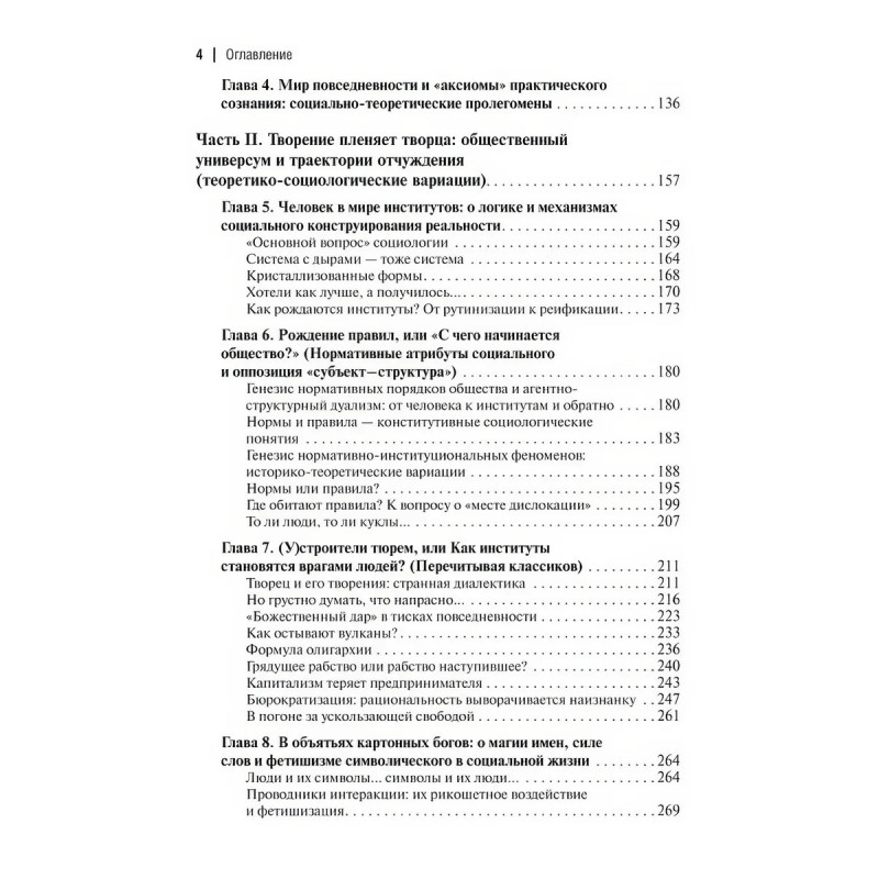 Всe или почти все в обществе создастся людьми (или при их непосредственном участии). Но почему-то то. что возникает таким образом, начинает жить своей жизнью и часто оборачивается против человека. Реальность общества а быть может, и вообще реальность всего так называемого объективного мира есть в некотором роде "воздушный замок", конструкция, грандиозная фантасмагория, сценическая декорация. Стены общества суть потемкинские деревни, возведенные над пропастью бытия. Но одновременно общество предстает перед наблюдателем как "железная клетка". Упрямая реальность социальных фактов давит и порой придавливает к земле, а вселенская пьеса разыгрывается в жанре драмы (если не сказать трагедии) и оборачивается для актеров отнюдь не шуточными последствиями. Человек обладает склонностью выносить реальность порожденную за пределы сознания и наделять се качествами самостоятельности; он создаст вокруг себя нечто, попадая в зависимость от собственных продуктов. Творение отрывается от творца, утверждая свое господство над ним. Этот процесс именуется отчуждением. Люди становятся орудиями собственных орудий. Метафора человека и общества как машин, творящих богов обладает глубоким смыслом. Язык и техника, слова и вещи, деньги и власть, институты и традиции сотворенные человеком божества; а боги всегда требуют особого к себе отношения, они хотят, чтобы их уважали и поклонялись им. Как такое возможно и почему гак происходит? На этот вопрос автор книги пытается дать развернутый, но отнюдь не исчерпывающий ответ. Книга адресована студентам и аспирантам, изучающим общественно-научные и гуманитарные дисциплины, философам, социологам, специалистам в смежных областях знания, а также широкой аудитории читателей, интересующихся проблемами философии и наук о человеке.
