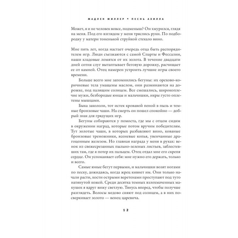 Одна из самых величественных и трогательных древнегреческих историй о дружбе и любви времен Троянской войны становится одним из самых захватывающих романов XXI века. Роман, которым восторгаются и критики, и читатели, и писатели: от рецензентов Washington Post, Time Magazine и Vogue до Джоан Роулинг и Донны Тартт. Магистр классической филологии Мадлен Миллер создавала свой роман десять лет, оттачивая до идеала каждую фразу, и, как только книга вышла в США, первые же рецензенты с восторгом отметили превосходный язык, которым написано произведение. Теперь, благодаря блестящему переводу Анастасии Завозовой, уникальный стиль Миллер может оценить и русскоязычный читатель. Яркий, красочный и увлекательный мир древнегреческих мифов пленяет с первых же страниц: здесь жестокие боги играют судьбами смертных, коварные правители плетут свои интриги, великие герои совершают подвиги, а над двумя героями, тяготеет мрачное пророчество. "Песнь Ахилла" – это, с одной стороны, масштабный эпос, с захватывающий сюжетом и харизматичными персонажами, а с другой – трогательная и поэтичная история настоящей любви, ради которой можно пойти на любые жертвы.
