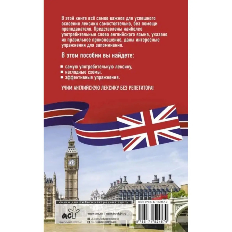 Английская лексика без репетитора. Все слова в схемах и упражнениях. Тарасова А. В. Тарасова Анна Валерьевна лингвист, преподаватель с многолетним опытом работы, автор популярных учебных пособий для детей и взрослых. В этом издании вы найдёте наиболее распространённую лексику по таким популярным темам как: человек, семья, учёба, работа, свободное время, путешествия, транспорт, еда, дом, погода, шопинг и др. Для всех слов дана транскрипция, соответствующая международной фонетической системе IPA. Новая лексика сопровождается интересными упражнениями, которые способствуют запоминанию слов урока и помогают начать использовать эти слова в речи. В конце книги вы найдёте ключи для самостоятельной проверки правильности выполнения задания. Это пособие способствует значительному увеличению словарного запаса. Издание будет полезно для всех изучающих английский язык на уровнях A1B1.