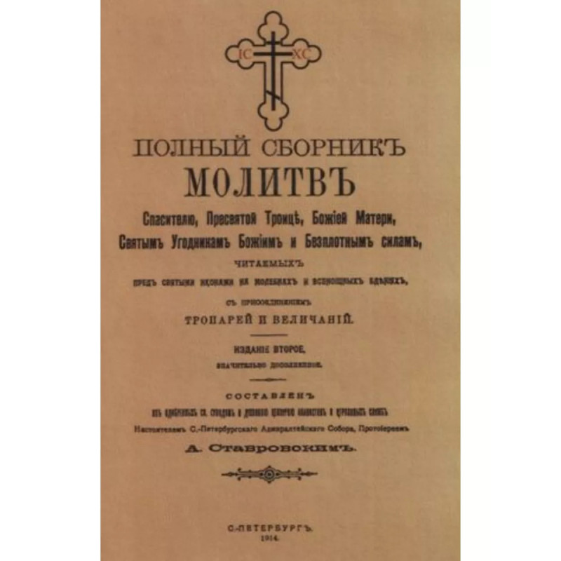 Полный сборник молитв читаемых перед святыми иконами на молебнах и всенощных бдениях, с присоединением тропарей и величаний. Ставровский А. Вашему вниманию предлагается "Полный сборникъ молитвъ читаемыхъ перед святыми иконами на молебнахъ и всенощныхъ бденияхъ, с присоединенiемъ тропарей и величанiй", составитель Ставровский А., репринтное издание 1914 года.
