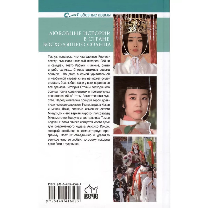 Любовные истории в Стране восходящего Солнца. Власкин А. В., Чернышева Ю. А. Так уж повелось, что "загадочная Япония" всегда вызывала немалый интерес. Гейши и самураи, театр Кабуки и аниме, синто и роботехника... Список штампов весьма обширен. Но даже в самой удивительной и необычной стране жизнь не может существовать без любви, как и у всех народов во все времена. История Страны восходящего солнца полна удивительных и трогательных повествований об этом божественном чувстве. Перед читателем пройдут герои древних и нынешних времен. Императрица Кокэн и монах Доке, великий изменник Акэкти Мицухидэ и его верная Хироко, полководец Минамото-но Есицунэ и воительница Томоэ Годзэн. В этом списке найдется место даже для современного чудака Акихико Кондо, который влюбился в компьютерную программу. Всех их объединило и уравняло великое чувство любви, которому покорны даже боги и чудовища.