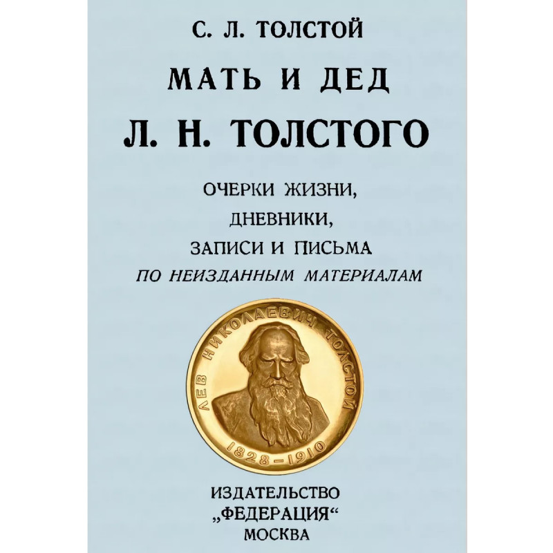 Мать и дед Л. Н. Толстого. Очерки жизни, дневники, записки и письма по неизвестным материалам. Толстой Сергей Львович. Репринт с издания. Москва, 1928. Содержание: Часть 1 - Дед Л.Н. Толстого кн. Н.С. Волконский; Часть 2 - Мать Л.Н. Толстого, гр. М.Н. Толстая, рожденная кн. Волконская; Часть 3 - Записки и письма Марии Николаевны Толстой, рожденной кн. Волконской. Граф Сергей Львович Толстой (1863 - 1947) - старший сын Л. Н. Толстого, один из первых композиторов и музыкальных этнографов России. Как ближайший сподвижник отца - принимал участие в перевозке духоборов в Канаду Принимал живое участие в сохранении и популяризации памятных мест, связанных с именем отца. В 1914 году написал первый путеводитель по Ясной Поляне. Тираж 30 экз. выполнен по технологии print-on-demand.