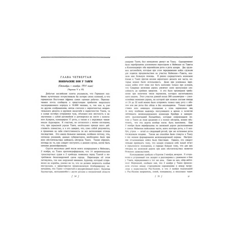 Мои воспоминания о Восточной Африке. (Африканский театр Первой мировой войны) Леттов-Форбек П. Э. Репринт с издания. Москва, 1927. Пер. с немецкого. С илл. в тексте и 3 отдельными листами чертежей. Африканский театр Первой мировой войны. Пауль Эмиль фон Леттов-Форбек - немецкий генерал-майор, командовавший войсками кайзера во время Восточноафриканской кампании Первой мировой войны, в которой германские войска не были побеждены вплоть до окончания войны. Считается одним из лучших партизанских командиров в истории. В апреле 1914 года подполковник фон Леттов-Форбек был назначен командующим германскими войсками в Германской Восточной Африке. Победил во всех сражениях, даже при десятикратном преимуществе противника. В 1918 г. узнав из документов пленного британца об окончании войны в Европе - капитулировал. Тираж 30 экз. выполнен по технологии print-on-demand.