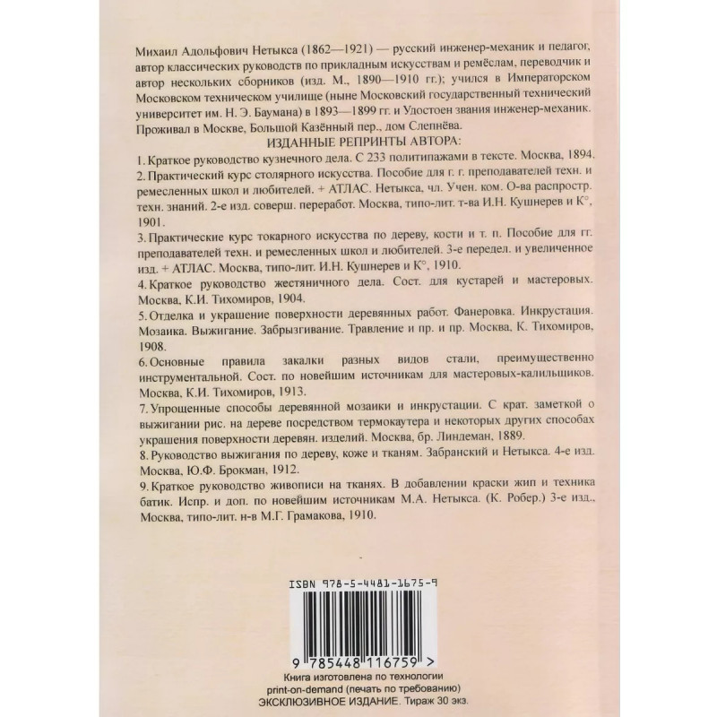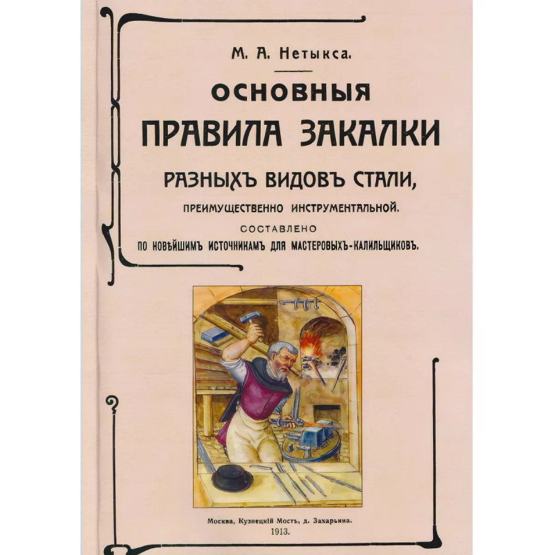 Основные правила закалки разных видов стали, преимущественно инструментальной. Сост. по новейшим источникам для мастеровых-калильщиков. Нетыкса М. А. Основные правила закалки разных видов стали, преимущественно инструментальной : Сост. по новейшим источникам для мастеровых-калильщиков / М. А. Нетыкса. Москва : К. И. Тихомиров, 1913 г. Книга изготовлена по технологии print-on-demand(печать по требованию)Эксклюзивное издание. Тираж 30 экз. Книга напечатана на русском языке с дореволюционной (дореформенной) орфографией.