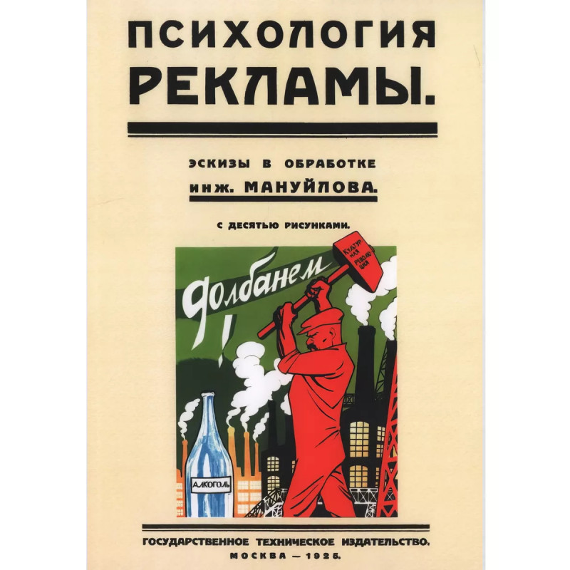 Психология рекламы. Мануйлов М.А. Психология рекламы.Репринтное издание.Нужна ли реклама в условиях Советской Республики? не надо забывать, что у нас существует НЭП, и жизнь не налажена еще во всех отношениях социалистически отсутствует налаженность в работе аппаратов распределения При этом производитель имеет перед собой колоссальный по количеству и разбросанности рынок потребителя, с весьма пониженной культурой. И к этому потребителю необходимо подойти вплотную, воздействовав на его психику, заинтересовать его фабрикатом, сбыть этот фабрикат ему, удовлетворив тем его потребность и усилив оборот предприятия....