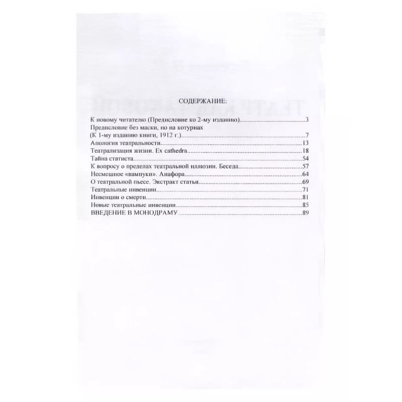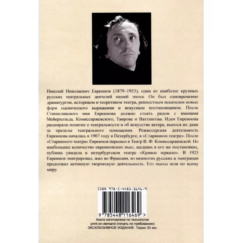 Театр как таковой. Евреинов Н. Н. Репринтное издание" Евреинов Н. Н.:В книге Театр как таковой Н. Н. Евреиновым формулется понятие театрализация жизни как инстинкта вечного преобразования, действующего и за пределами театра, и во многом определяющего мышление и быт человека.