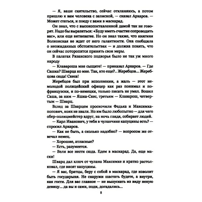 Архаровцы. Пропавшие драгоценности. Трускиновская Д. М. Книга продолжает историю, начатую в романе Архаровцы. Блудное художество. Обер-полицмейстер Николай Петрович Архаров с помощниками расследует дело о похищенном золотом сервизе, и, кажется, разгадка близка. Но появляются новые неприятности: в нескольких богатых домах при странных обстоятельствах пропадают драгоценности. Кто стоит за этим: уж не вернувшийся ли тайно в Москву вор Ванька Каин?