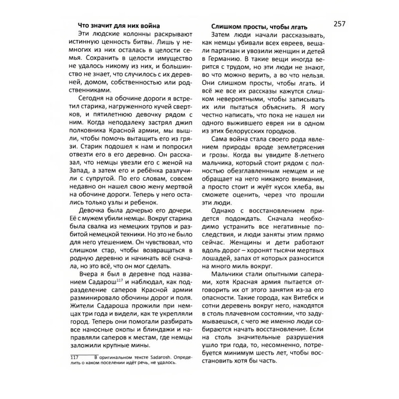 Настоящее издание представляет собой сборник материалов, публиковавшихся в газетах и журналах Великобритании, США и Канады в период с 1941 по 1945 год и посвящённых событиям Великой Отечественной войны между СССР и Германией. В книгу вошли публикации ведущих мировых СМИ того времени. Среди них газеты "Таймс", "Нью-Йорк таймс", "Ивнинг стар", журналы "Тайм", "Ньюзуик", "Лайф" и другие известные органы печати того времени. О событиях войны на Восточном фронте в материалах издания рассказывают иностранные корреспонденты в СССР, военные аналитики стран-союзников и видные международные обозреватели. Среди авторов приведённых в книге статей десятки лауреатов международных и государственных премий в области журналистики. Издание подготовлено Фондом исторической перспективы в рамках мультимедийного издательского проекта "Возвращение украденных смыслов. Правда о Великой Отечественной войне в англоязычной прессе 1941-1945 гг.", реализуемого при поддержке Президентского фонда культурных инициатив.