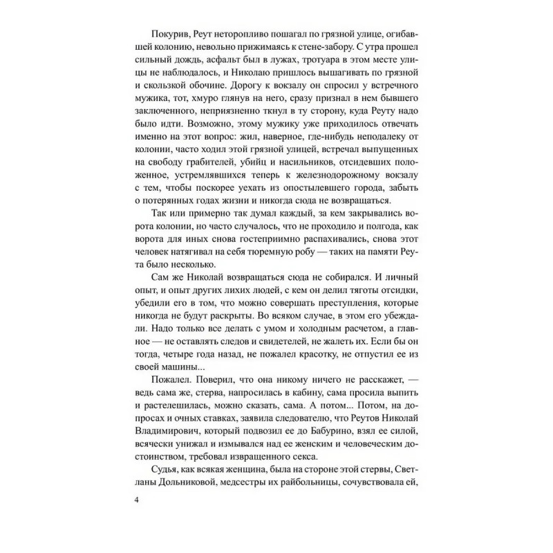 В книгу известного воронежского журналиста и писателя, мастера остросюжетного жанра Валерия Барабашова вошли два его детективных романа Душегуб и Операция "Пепел". В первом из них в сельской местности орудует местный Чикатило. Бывший зэк с тюремным погонялом Реут, водитель грузовика, снова взялся за старое. Разъезжая по делам, приглашает в кабину молодых женщин, насилует их и убивает Во втором скорый поезд Русь идет по обычному расписанию. Тем временем на его борту одно ЧП сменяет другое: убиты две проводницы, на свободе оказываются заключенные из спецвагона, два наркомана выбрасывают из кабины локомотивную бригаду и сами ведут поезд, а террористы задумали жуткое взрыв во встречных поездах