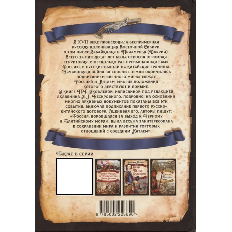 В XVII веке происходила беспримерная русская колонизация Восточной Сибири, в том числе Забайкалья и Приамурья (Даурии). Всего за пятьдесят лет была освоена огромная территория, в несколько раз превышавшая саму Россию, и русские вышли на китайские границы. Начавшаяся война за спорные земли окончилась подписанием вечного мира между Россией и Китаем, многие положения которого действуют и поныне. В книге П. Т. Яковлевой, написанной под редакцией академика Л. Г. Бескровного, подробно, на основании многих архивных документов показаны все эти события, включая подписание первого русско-китайского договора. Оценивая его, авторы пишут: Россия, боровшаяся за выход к Черному и Балтийскому морям, была весьма заинтересована в сохранении мира и развитии торговых отношений с соседним Китаем.