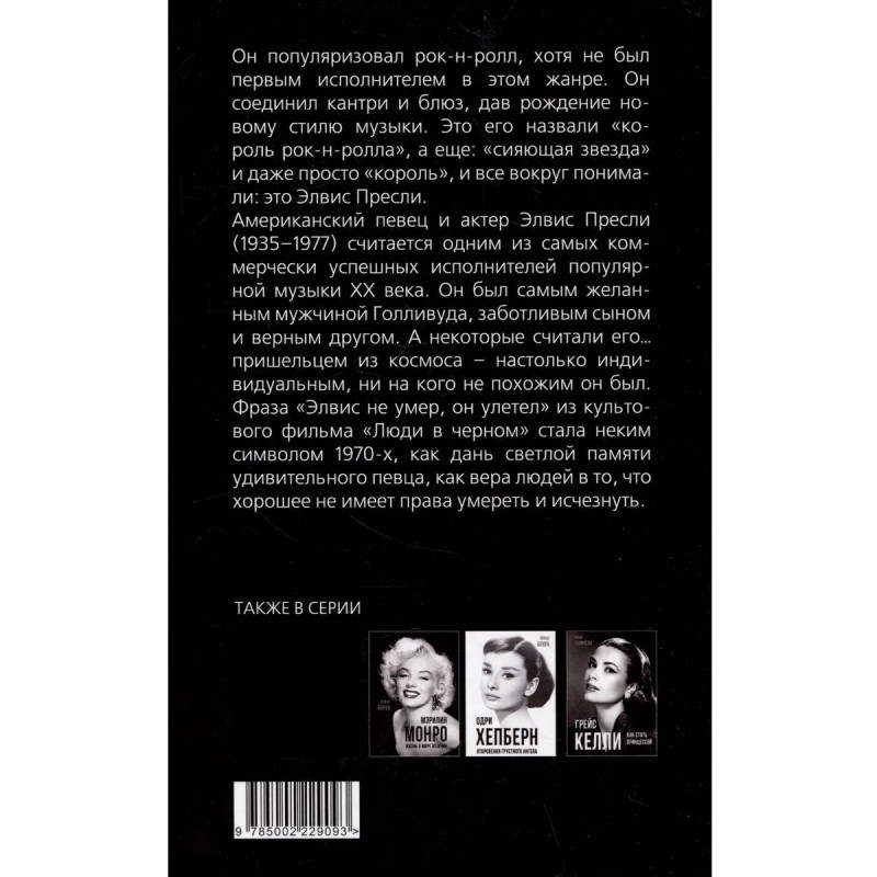 Он популяризовал рок-н-ролл, хотя не был первым исполнителем в этом жанре. Он соединил кантри и блюз, дав рождение новому стилю музыки. Это его назвали «король рок-н-ролла», а еще: «сияющая звезда» и даже просто «король», и все вокруг понимали: это Элвис Пресли. Американский певец и актёр Элвис Пресли (1935–1977) считается одним из самых коммерчески успешных исполнителей популярной музыки XX века. Он был самым желанным мужчиной Голливуда, заботливым сыном и верным другом. А некоторые считали его… пришельцем из космоса – настолько индивидуальным, ни на кого не похожим он был. Фраза «Элвис не умер, он улетел» из культового фильма «Люди в черном» стала неким символом 1970-х, как дань светлой памяти удивительного певца, как вера людей в то, что хорошее не имеет права умереть и исчезнуть.