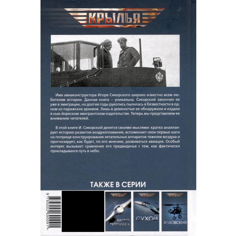 Имя авиаконструктора Игоря Сикорского широко известно всем любителям истории. Данная книга – уникальна. Сикорский закончил ее уже в эмиграции, но долгие годы рукопись пылилась в безвестности в одном из парижских архивов. Лишь в девяностые ее обнаружили и издали в нью-йоркском эмигрантском издательстве. Теперь мы представляем ее вниманию читателей. В этой книге И. Сикорский делится своими мыслями: кратко анализирует историю развития воздухоплавания, вспоминает свои первые шаги на поприще конструирования летательных аппаратов тяжелее воздуха и прогнозирует, как будет, по его мнению, развиваться авиация. Особый интерес вызывает сравнение его предвиденья с тем, как фактически прокладывался путь в небо.
