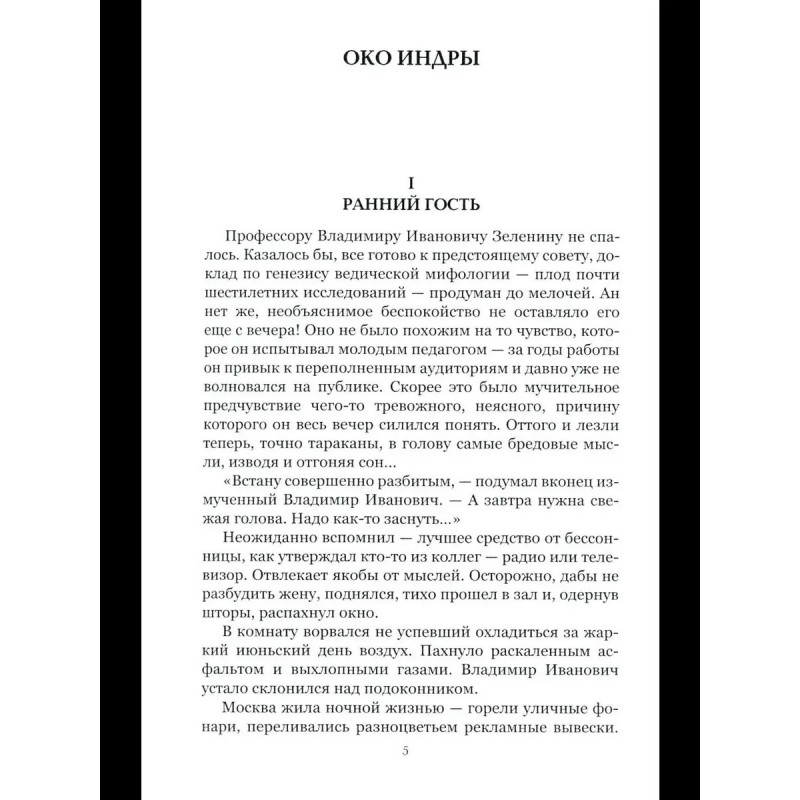 Тимошев Р. М. Око Индры: повести В новую книгу известного писателя Рафаэля Тимошева вошли две увлекательные научно-фантастические повести Око Индры и Ликвидатор. Все началось с утреннего визита рядового сотрудника института к специалисту по индуизму профессору Зеленину. Оставленный сотрудником древний артефакт оказался не только источником зашифрованной информации о мистическом Оке восточного бога, но и стал причиной цепи захватывающих драматических событий, в которые невольно были вовлечены и герои повести, и даже их далекие предки. В не столь уж отдаленном будущем технологии человечества достигли уровня, когда стало возможным создание искусственных людей клонов, копий реально существующих мужчин и женщин, но с многократно улучшенными способностями и усовершенствованными органами, например, с квантовым компьютером вместо мозга или с ядерным мини-реактором вместо сердца. Так возник проект Аналоговая трансформация, официально преследующий исключительно гуманистические цели. Но у всего есть оборотная