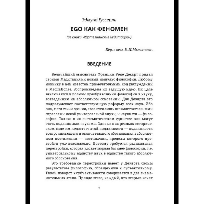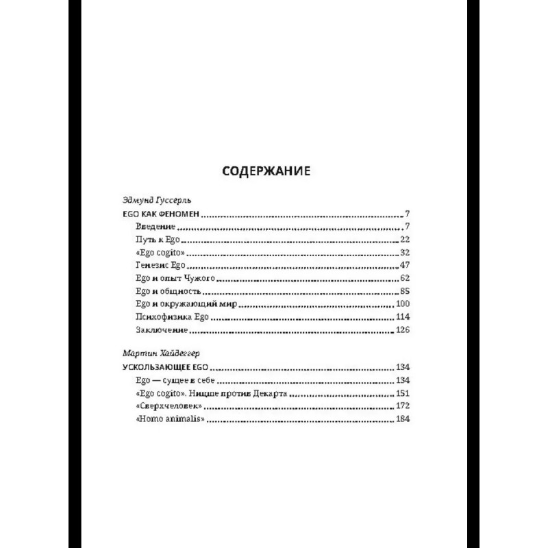 Эдмунда Гуссерля и Мартина Хайдеггера связывали не только общие научные, но и личные отношения: Хайдеггер считался "наследником" Гуссерля, его самым способным учеником. Гуссерль, основатель феноменологии, предложил метод, который предполагает своего рода медитацию по Декарту ("картезианское сомнение"), "подвешивание" (проблематизирование) даже самых, казалось бы, очевидных вещей с целью исследования субъективного сознательного опыта. Этот метод оказал большое влияние на Хайдеггера, который позже, однако, перешел к изучению конкретного человеческого существования ("экзистенции"). Гуссерль отнёсся к исследованиям Хайдеггера отрицательно, что послужило причиной охлаждения между двумя философами. В данной книге приводятся работы Э. Гуссерля и М. Хайдеггера, касающиеся понятия "Я" ("Эго"), которые дают представление о сходстве и различии позиций двух выдающихся мыслителей.