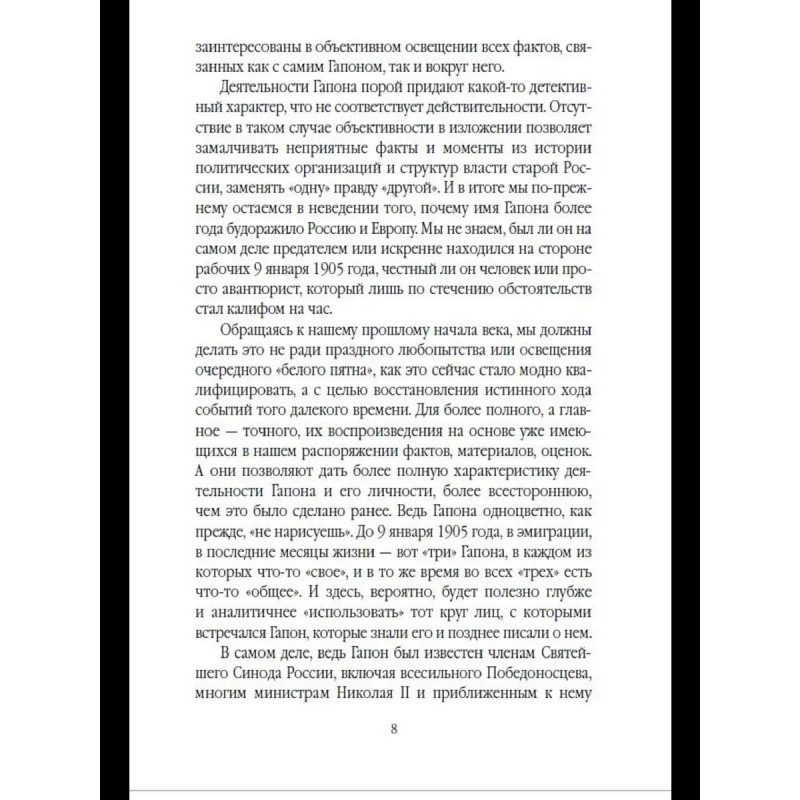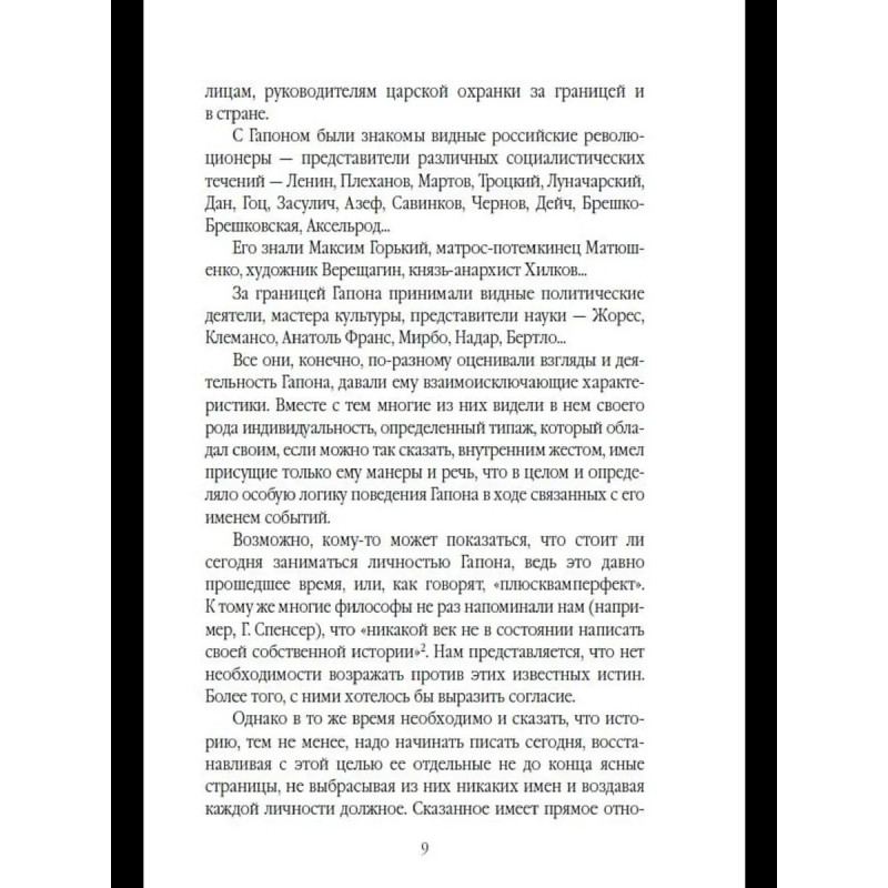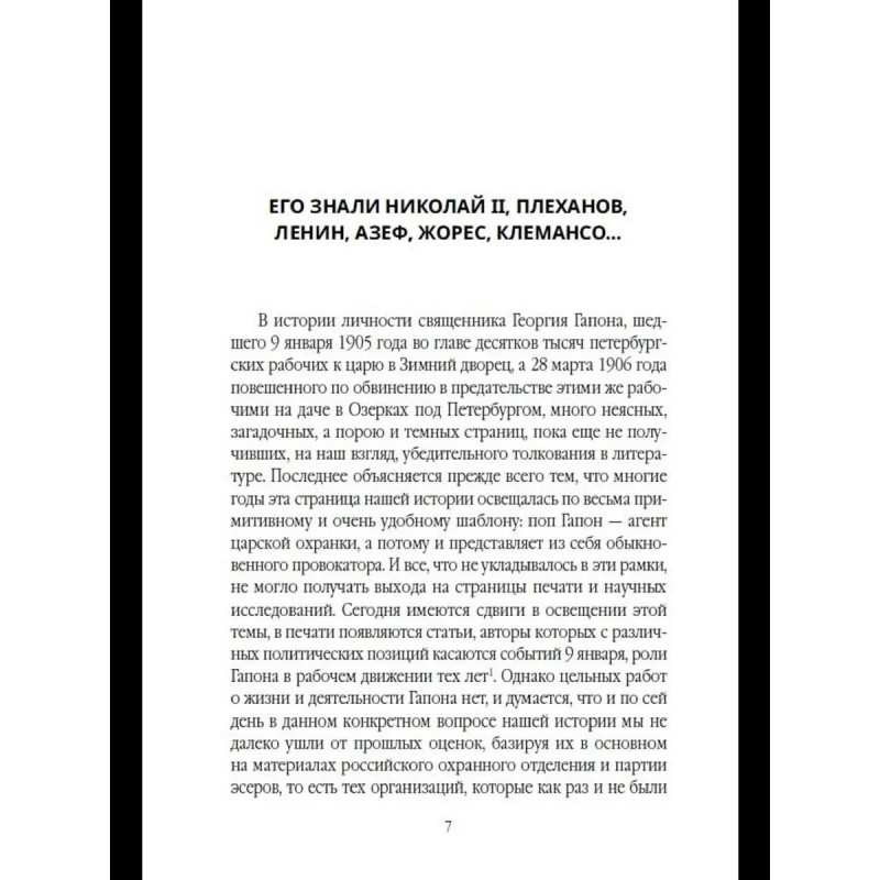 Имя Георгия Гапона навсегда останется в истории России как символ начала революции 1905-1907 годов. В прошлом его часто называли агентом охранки, и эта точка зрения остаётся популярной и сегодня. Автор предлагает свой взгляд на этот вопрос, исследуя связи Гапона с различными революционными партиями России, его контакты и деятельность за границей. Он характеризует Гапона как политическую личность, основываясь на трех периодах его жизни: до 9 января 1905 года, в эмиграции и в последние месяцы перед смертью. По мнению автора, стремление Гапона быть первым и выделяться из толпы, определяло логику его поведения, которое часто граничило с азартом и непредсказуемостью.
