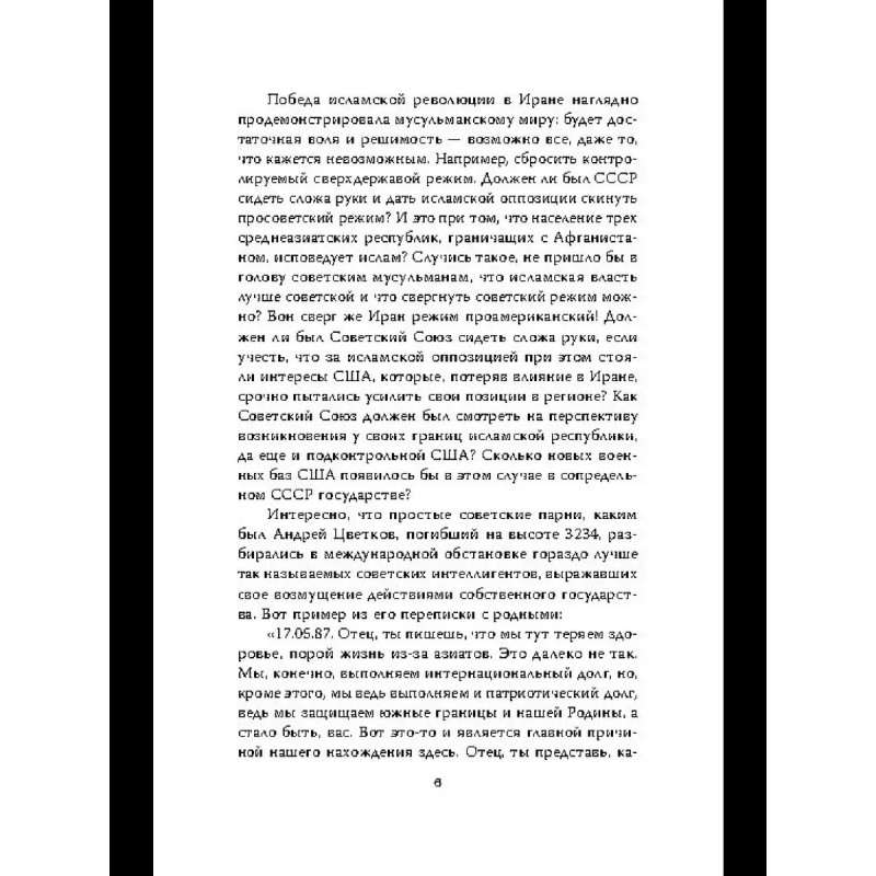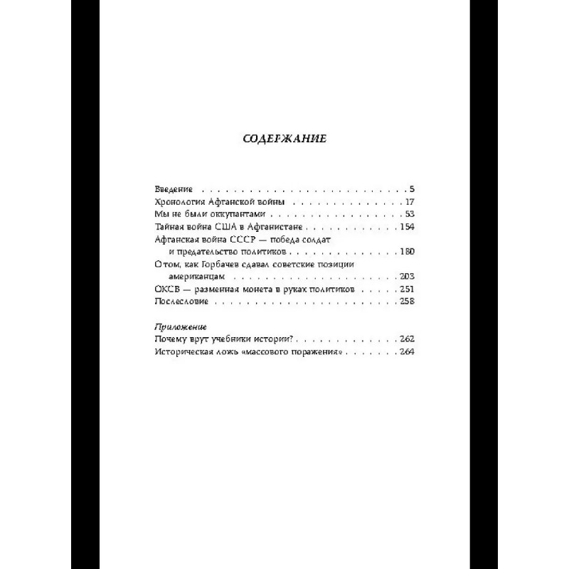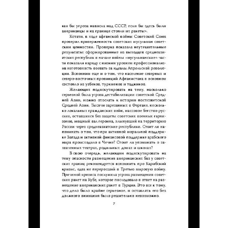 Зачем мы воевали в Афганистане и зря ли мы воевали? Потери СССР за 10 лет этой войны составили около 15 тысяч человек, и в головах некоторых граждан нашего общества бытует мнение о том, что афганская война была бессмысленной. Книга известного российского публициста Юрия Мухина опровергает этот миф. Как показывает автор, пребывание советских войск в Афганистане обеспечивало безопасность южных границ нашего государства, а советская армия показала в афганской войне свои прекрасные боевые качества и одержала победу над моджахедами и стоявшими за их спиной американцами. Для доказательства этого Мухин привлек материалы целого ряда авторов, в том числе генерала Варенникова, генерала КГБ Широнина, исследования американских историков Р. Кирана и Т. Кенни.