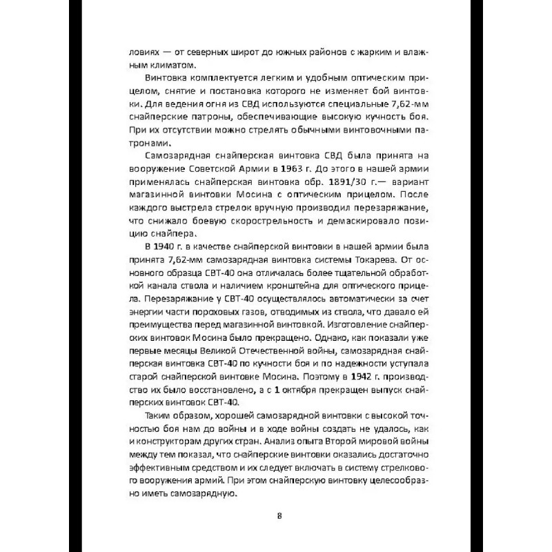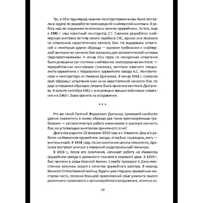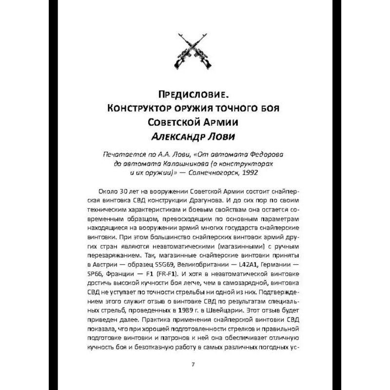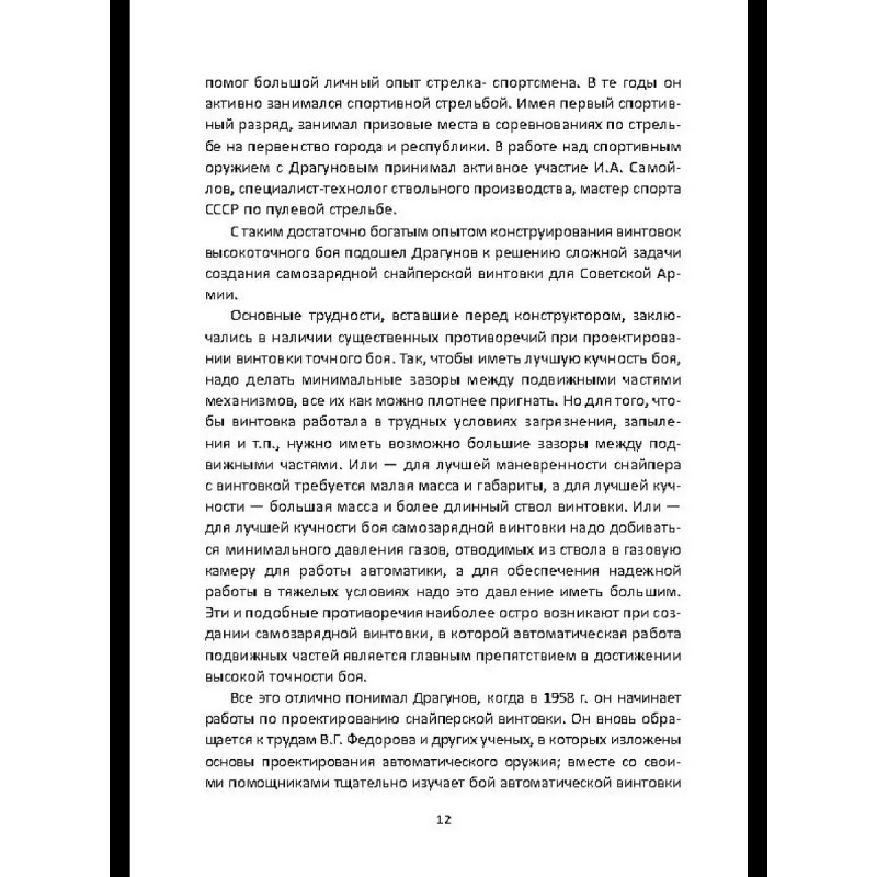 В 1958-1963 гг. руководство Министерства обороны СССР проводило конкурс на новую снайперскую винтовку для замены заслуженной, но морально устаревающей "мосинки" образца 1891/30 гг. с оптическим прицелом. Неожиданным победителем оказался самый молодой из участников - ижевец Евгений Драгунов, до тех пор занимавшийся конструированием лишь спортивного, "игрушечного" по мнению конкурентов оружия. Так на вооружение Советской Армии, а затем и на мировой оружейный рынок попала "плетка" - легендарная винтовка СВД. В этой книге читатель сможет познакомится с биографией ее конструктора Е. Ф. Драгунова (1920-1991), узнает о различных образцах оружия, созданного им до, и после СВД, о непростом пути ее победы на конкурсе и о том, какую роль в ее судьбе сыграл легендарный снайпер Василий Зайцев. Будет сказано и о ее перспективах в качестве оружия для снайпера и "марксмана" - лучшего пехотного стрелка - и какие альтернативы разрабатываются для Вооруженных Сил России в будущем.
