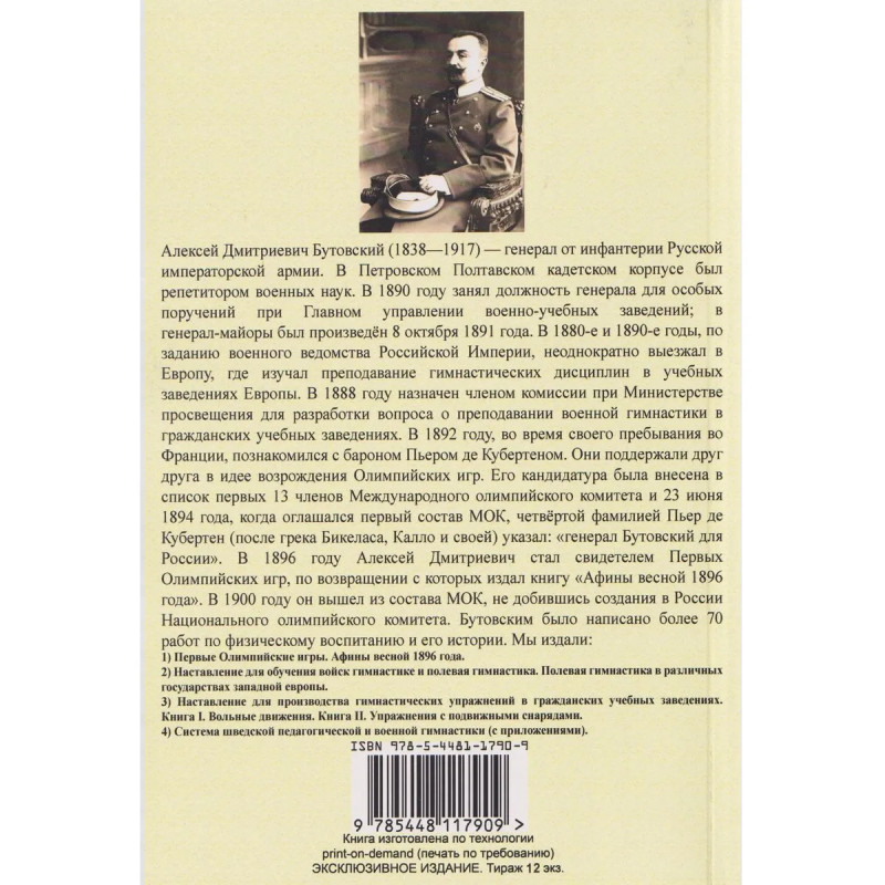Алексей Дмитриевич Бутовский (1838–1917) — генерал от инфантерии Русской императорской армии, военный педагог и спортивный функционер, один из учредителей и член Международного олимпийского комитета (МОК) (1894–1900). Некоторые факты из биографии:Родился в Пятигорцах Лубенского уезда Полтавской губернии.В 1880-е и 1890-е годы по заданию военного ведомства Российской империи неоднократно выезжал в Европу, где изучал преподавание гимнастических дисциплин.В 1888 году был назначен членом комиссии при Министерстве просвещения для разработки вопроса о преподавании военной гимнастики в гражданских учебных заведениях.
