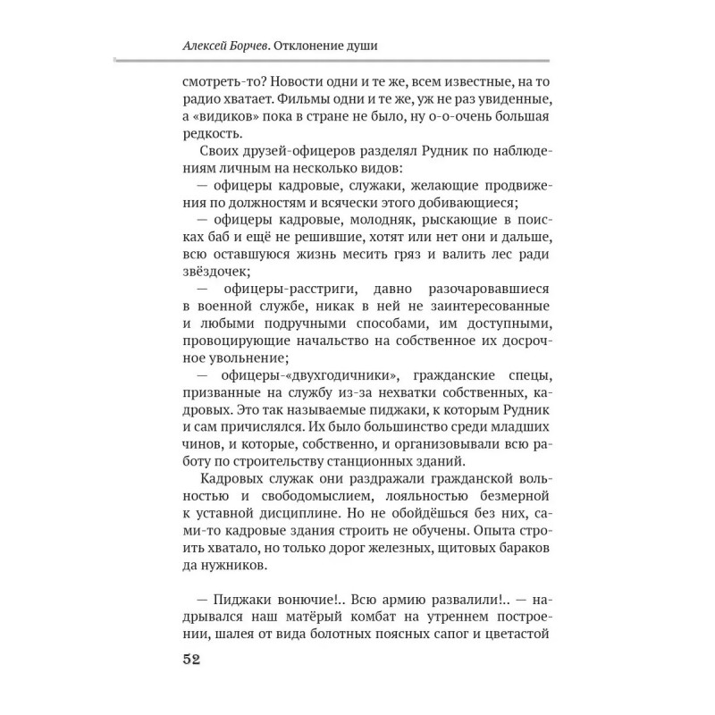 Книгу Отклонение души можно было бы отнести к жанру документальной прозы. Но такое сопоставление не совсем корректно. Это не мемуары, не биография и не публицистика. Основное сходство с жанром это только то, что сюжеты основаны исключительно на реальных событиях, причём произошедших непосредственно либо с автором, либо с близкими ему родными и друзьями. Литературная обработка фактического материала автором Борчевым А. Н. в конечном итоге создаёт фактурное художественное полотно. Там реальность преобладает над редким вымыслом, служащим только для скрепления событий в последовательную, единую цепь, где звеньями служат судьбы людей, которые становятся отражением противоречий и трагедий целой эпохи. Повесть Неотвратимость и цикл рассказов создают многогранный образ советской и постсоветской действительности от армейских будней до семейных драм, от горьких раздумий о прошлом до философских размышлений о пути человека.