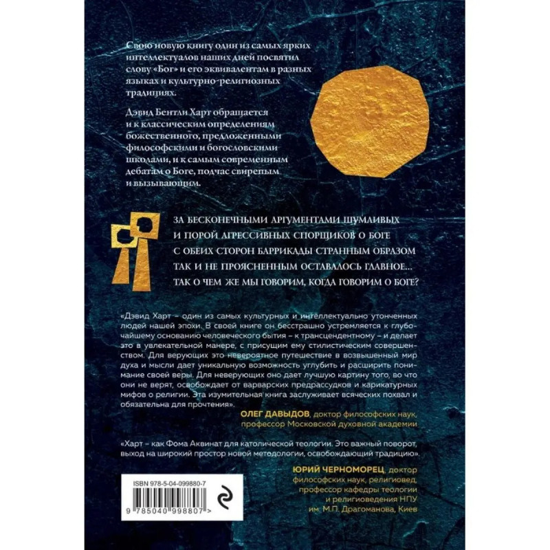 Бог. Новые ответы у границ разума. Свою новую книгу один из самых ярких интеллектуалов наших дней посвятил слову "Бог" и его эквивалентам в разных языках и культурно-религиозных традициях. Дэвид Бентли Харт обращается и к классическим определениям божественного, предложенными философскими и богословскими школами, и к самым современным дебатам о Боге, подчас свирепым и вызывающим. За бесконечными аргументами шумливых и порой агрессивных спорщиков о Боге с обеих сторон баррикад странным образом так и не проясненным оставалось главное... Так о чем же мы говорим, когда говорим о Боге? Для верующих эта книга - невероятное путешествие в возвышенный мир духа и мысли, которое дает уникальную возможность углубить и расширить понимание своей веры. Для неверующих оно дает лучшую картину того, во что они не верят, освобождает от варварских предрассудков и карикатурных мифов о религии.