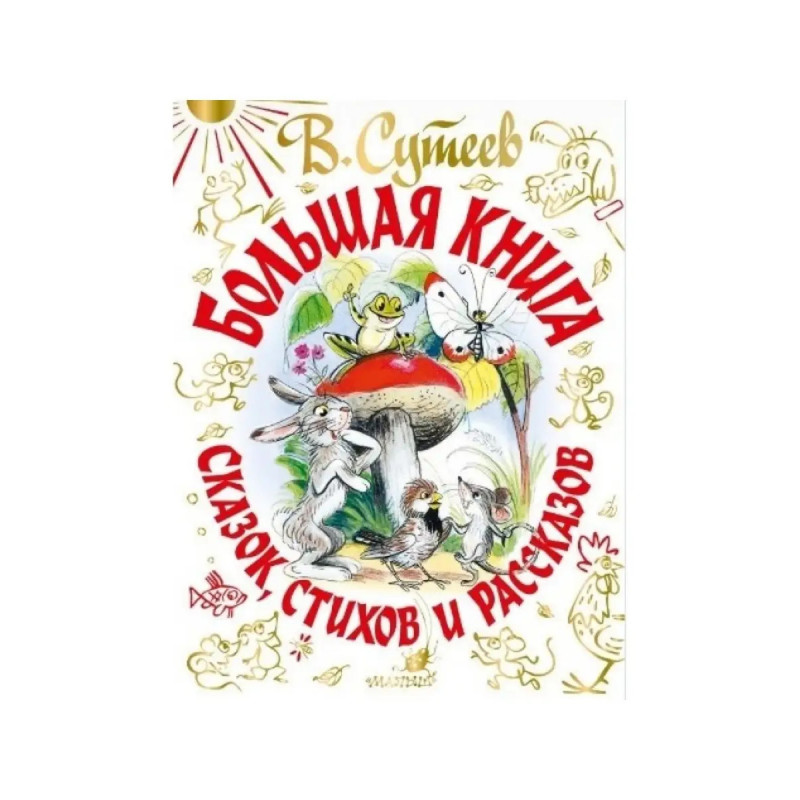 Большая книга сказок, стихов и рассказов. "Большая книга В. Сутеева" это сборник сказок и стихотворений в рисунках известного художника-мультипликатора, любимца бабушек и мам, Владимира Григорьевича Сутеева. В книгу вошли произведения российских и зарубежных писателей и поэтов: А. Барто, С. Михалкова, К. Чуковского, А. Прёйсна, Л. Муур, С. Мурадяна и других. Также в сборник включены сказки самого В. Сутеева, которые входили в его наиболее известный, неоднократно переизданный сборник "Сказки и картинки". Особенно примечательна наша книга тем, что в ней впервые после долгого перерыва публикуются иллюстрации В. Сутеева к циклу стихотворений А. Барто "Вовка добрая душа", к стихам В. Орлова "Однажды" и "Рецепт", а также "Ёжик-портняжка" и "Уточка и дудочка" Е. Каргановой. Для детей до 3-х лет.