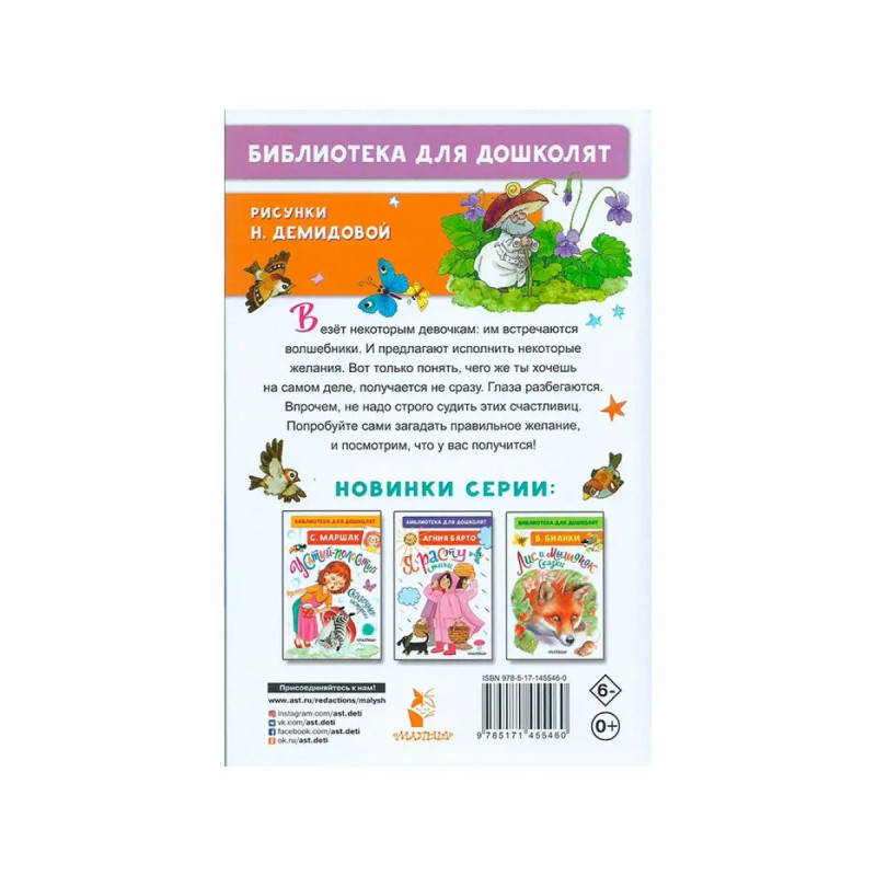 Цветик-семицветик. Сказки. В книге "Цветик-семицветик. Сказки" четыре сказки В. Катаева. Самая известная из них "Цветик-семицветик", про девочку, которая получила в подарок семь желаний! И очень глупо их растратила. И только последнее желание оказалось добрым и полезным. Очень мудрая история, пригодится не только детям, но и взрослым. Рисунки Натальи Демидовой. Для дошкольного возраста.